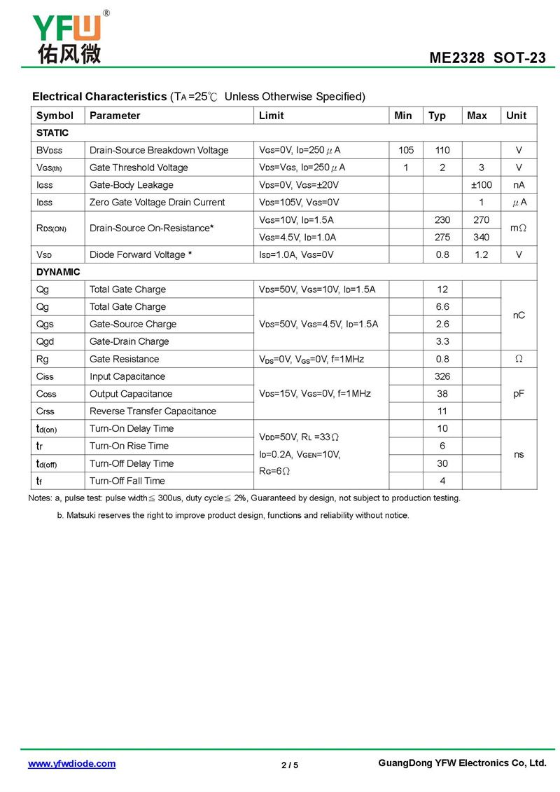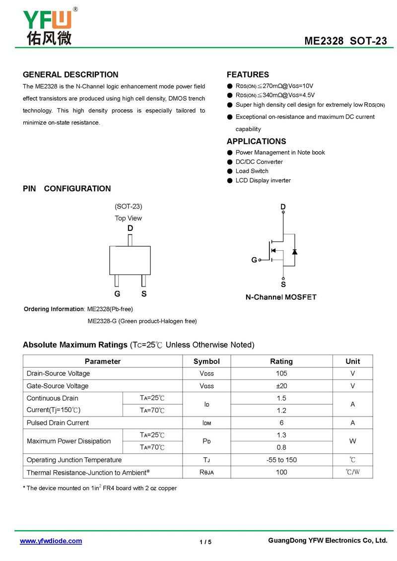 N溝MOS管 ME2328 規格書_價格_PDF手冊-廣東佑風微原廠ME2328 SOT-23_(YFW佑風微)品牌