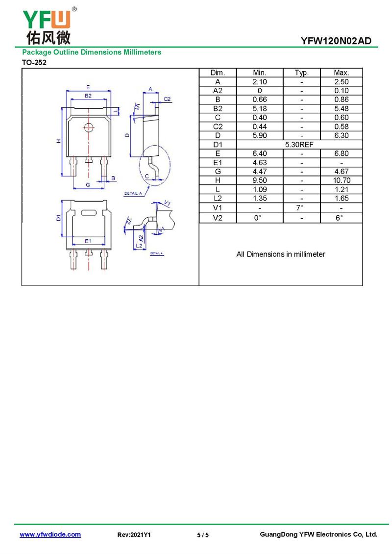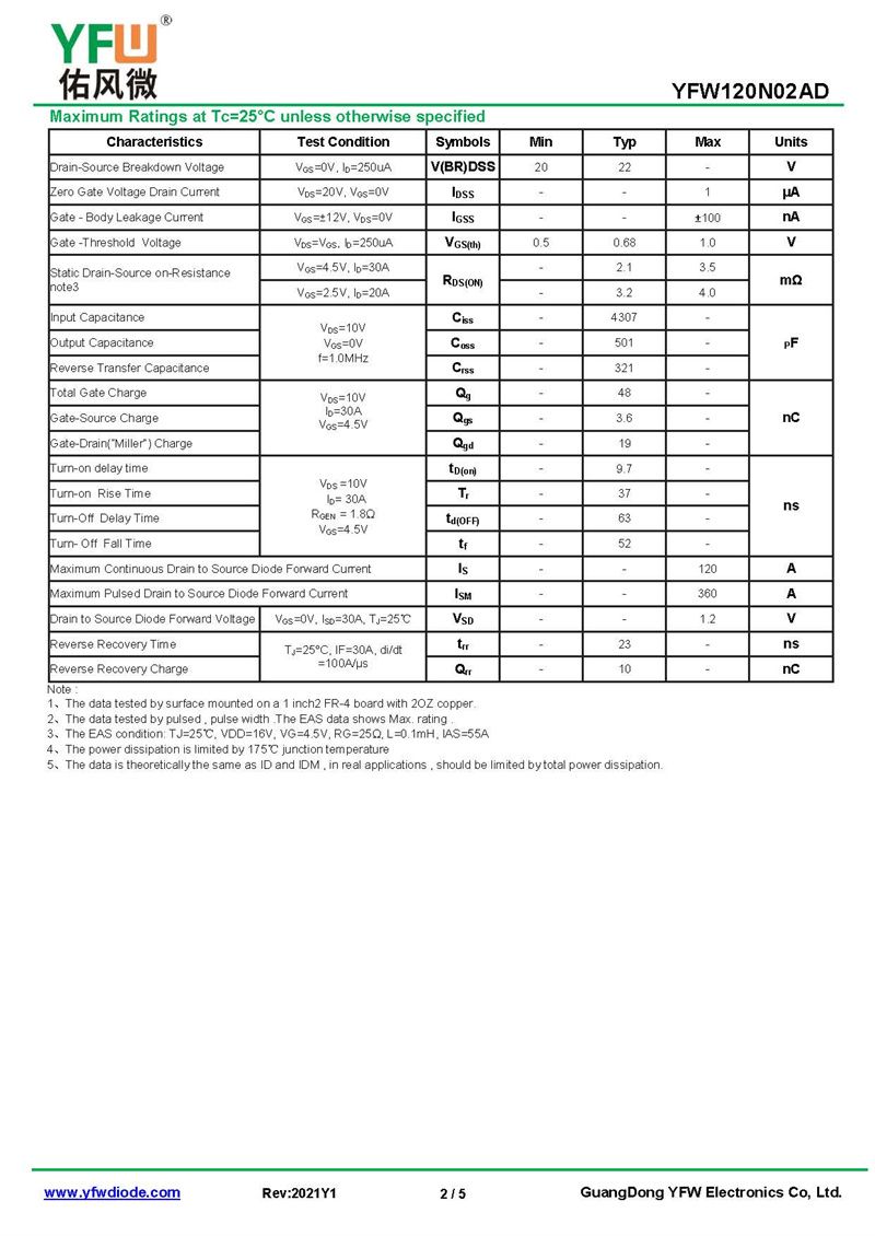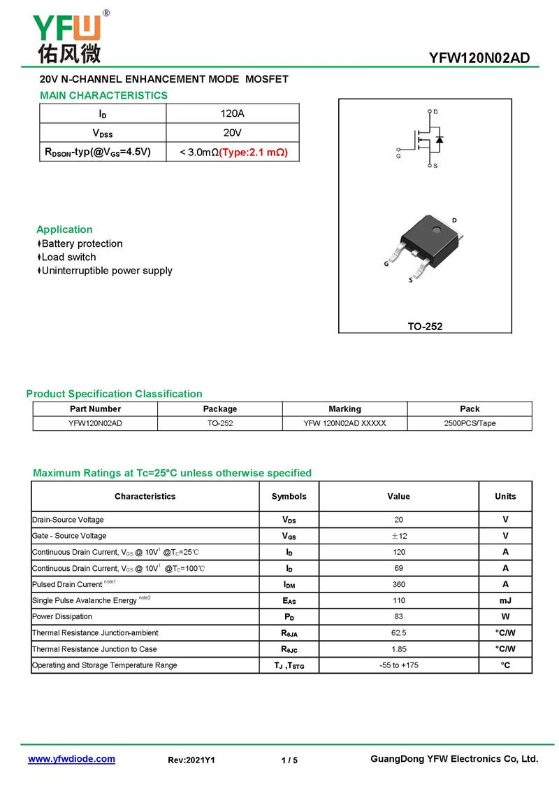 P溝MOS管 YFW120N02AD 規格書_價格_PDF手冊-廣東佑風微原廠YFW120N02AD TO-252_(YFW佑風微)品牌