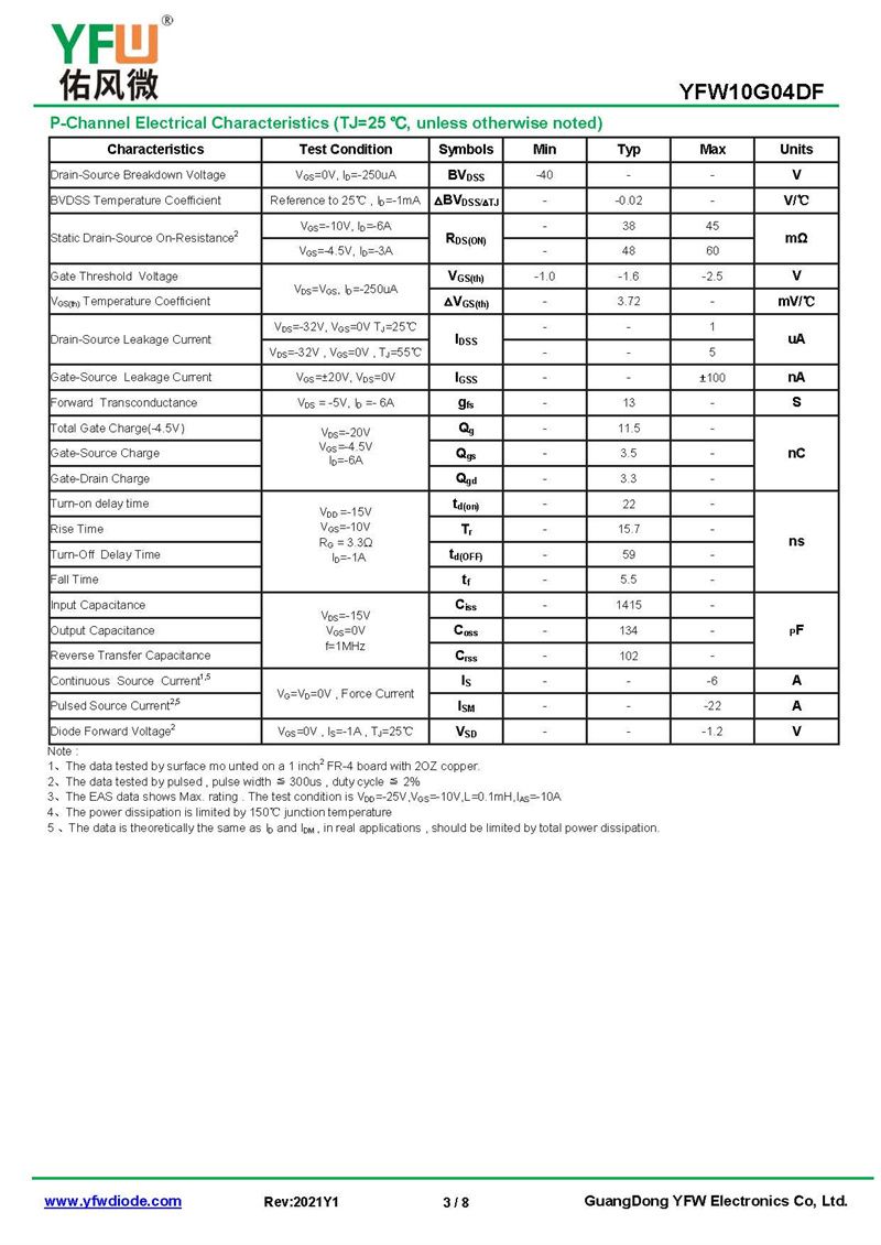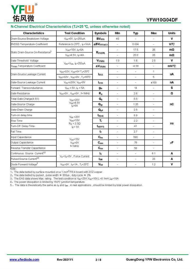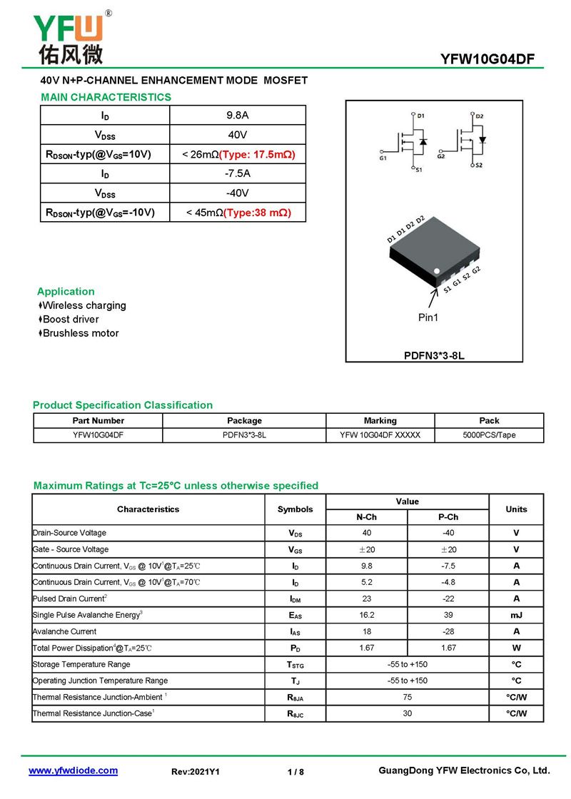 場效應管 YFW10G04DF 規格書_價格_PDF手冊-廣東佑風微原廠YFW10G04DF PDFN3*3-8L_(YFW佑風微)品牌