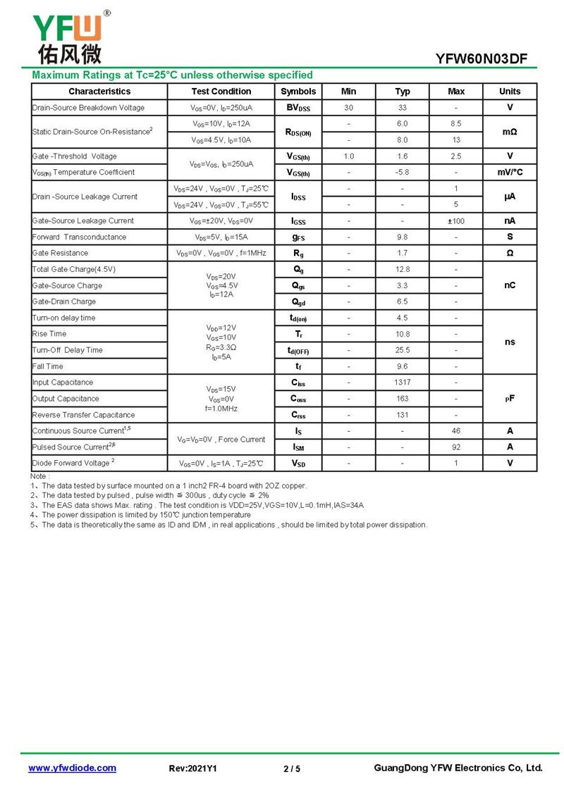 場效應(yīng)管YFW60N03DF 規(guī)格書_價格_PDF手冊-廣東佑風(fēng)微原廠YFW60N03DF PDFN3*3-8L_(YFW佑風(fēng)微)品牌
