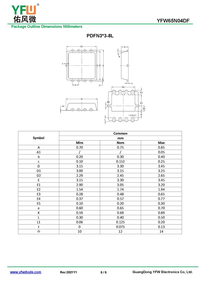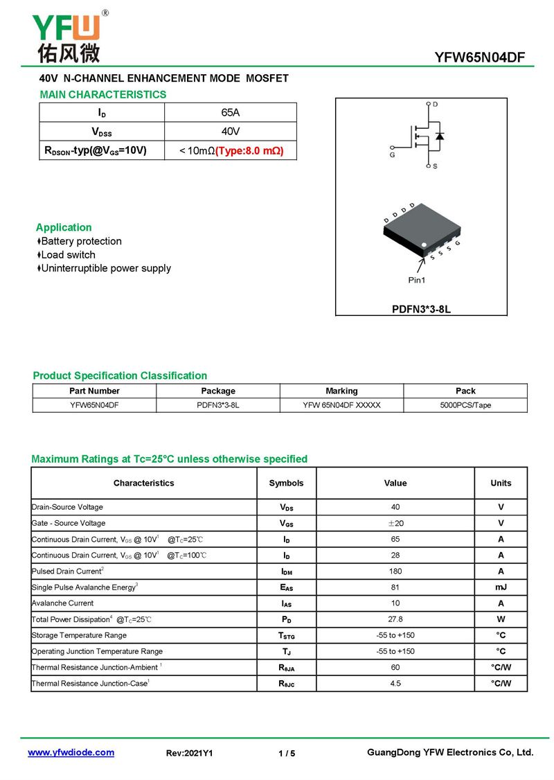場效應管YFW65N04DF 規格書_價格_PDF手冊-廣東佑風微原廠YFW65N04DF PDFN3*3-8L_(YFW佑風微)品牌