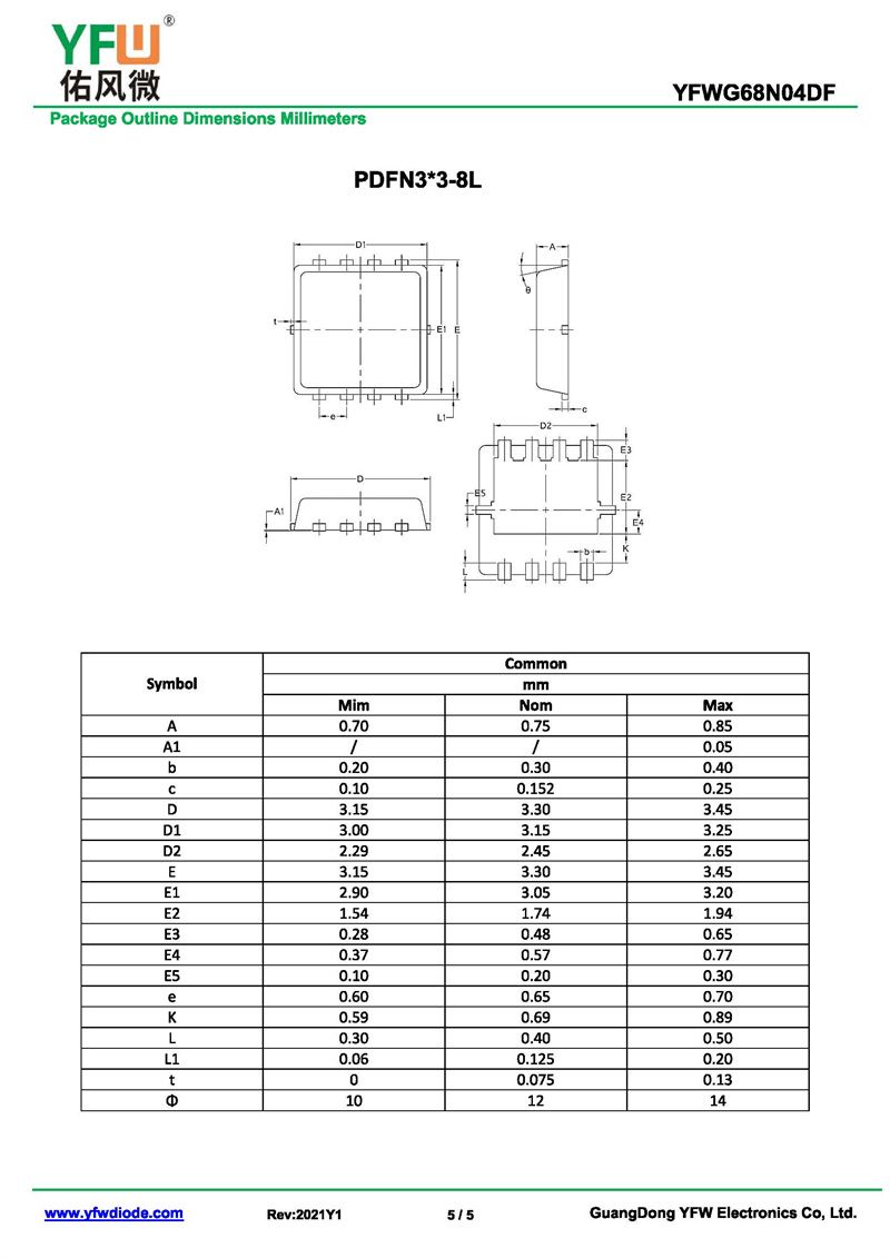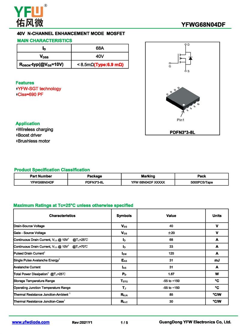 場效應管YFWG68N04DF 規格書_價格_PDF手冊-廣東佑風微原廠YFWG68N04DF PDFN3*3-8L_(YFW佑風微)品牌