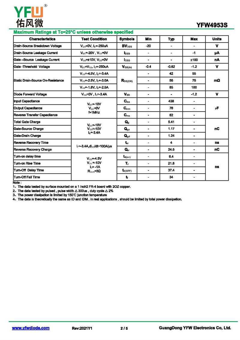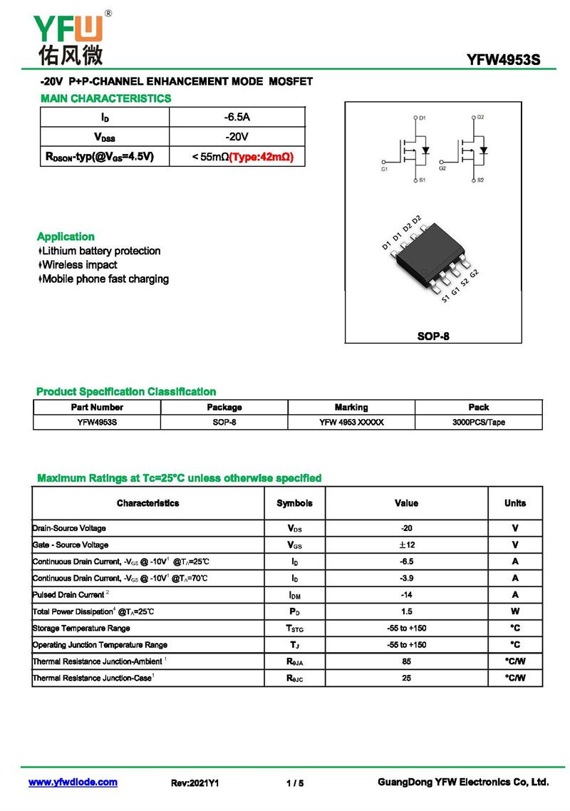場效應(yīng)管YFW4953S 規(guī)格書_價格_PDF手冊-廣東佑風(fēng)微原廠YFW4953S SOP-8_(YFW佑風(fēng)微)品牌