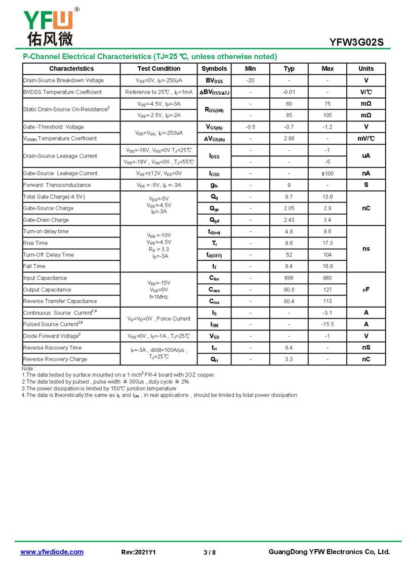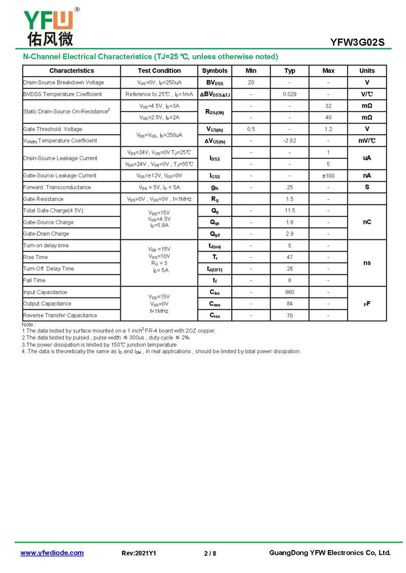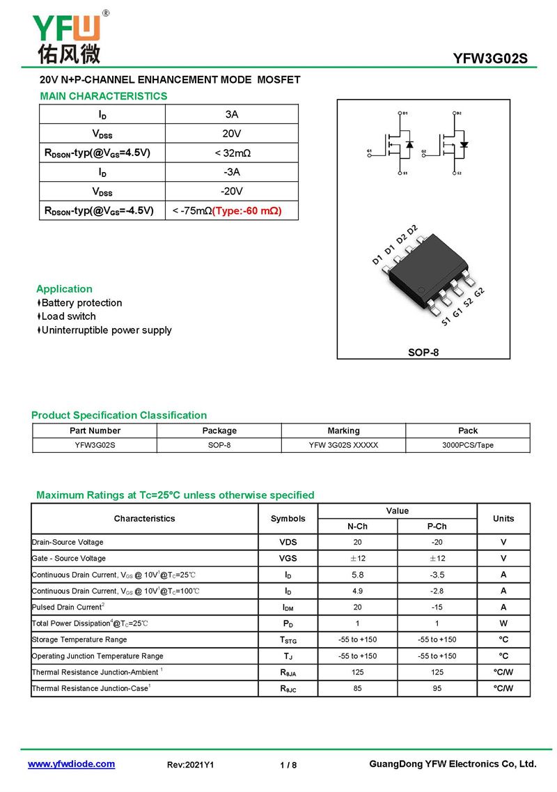 場(chǎng)效應(yīng)管YFW3G02S 規(guī)格書_價(jià)格_PDF手冊(cè)-廣東佑風(fēng)微原廠YFW3G02S SOP-8_(YFW佑風(fēng)微)品牌