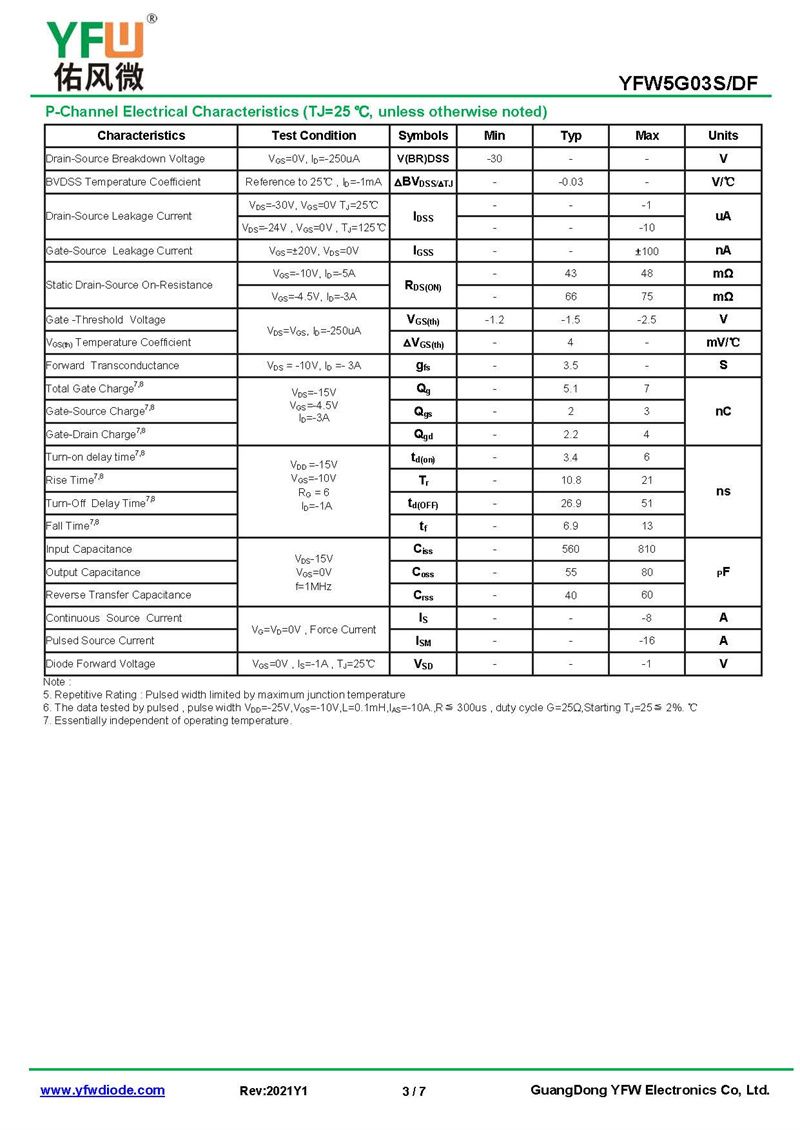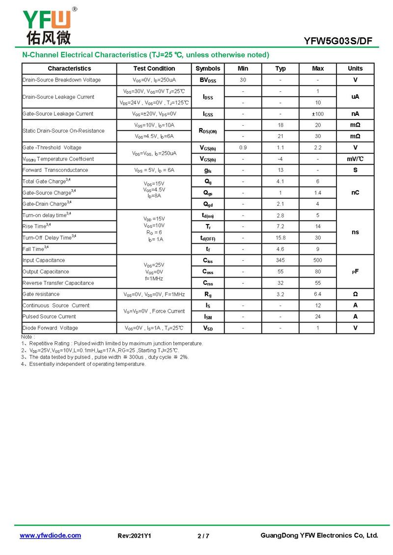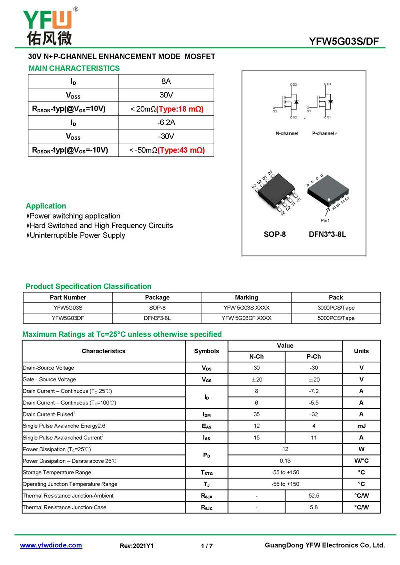 場效應管YFW5G03S 規格書_價格_PDF手冊-廣東佑風微原廠YFW5G03S SOP-8_(YFW佑風微)品牌