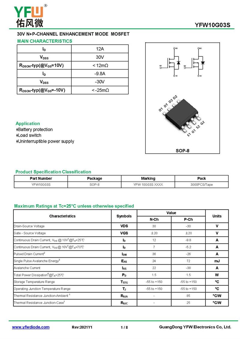 場效應管YFW10G03S 規(guī)格書_價格_PDF手冊-廣東佑風微原廠YFW10G03S SOP-8_(YFW佑風微)品牌