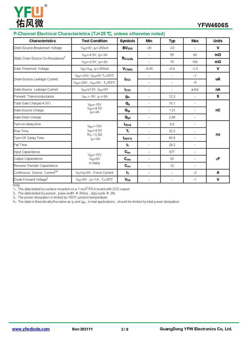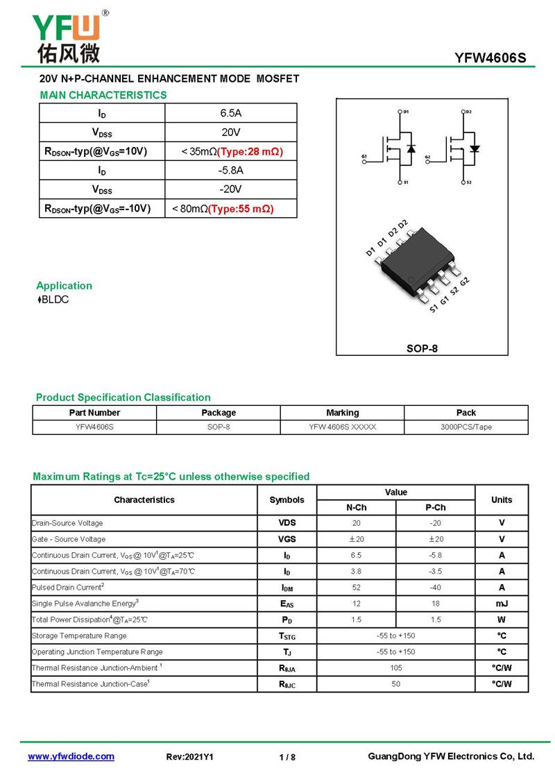 場效應管YFW4606S 規(guī)格書_價格_PDF手冊-廣東佑風微原廠YFW4606S SOP-8_(YFW佑風微)品牌