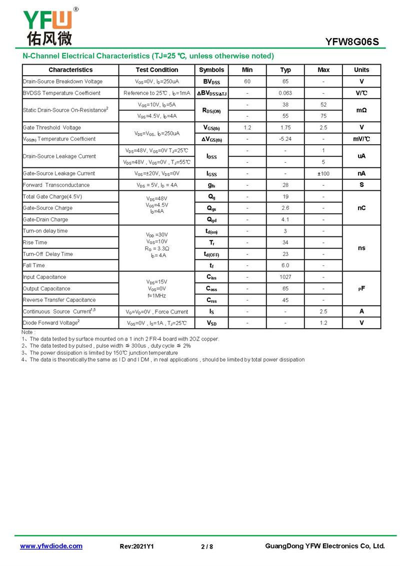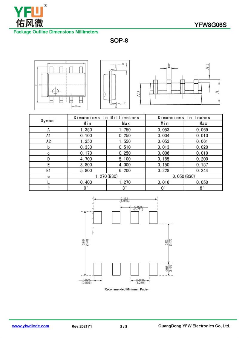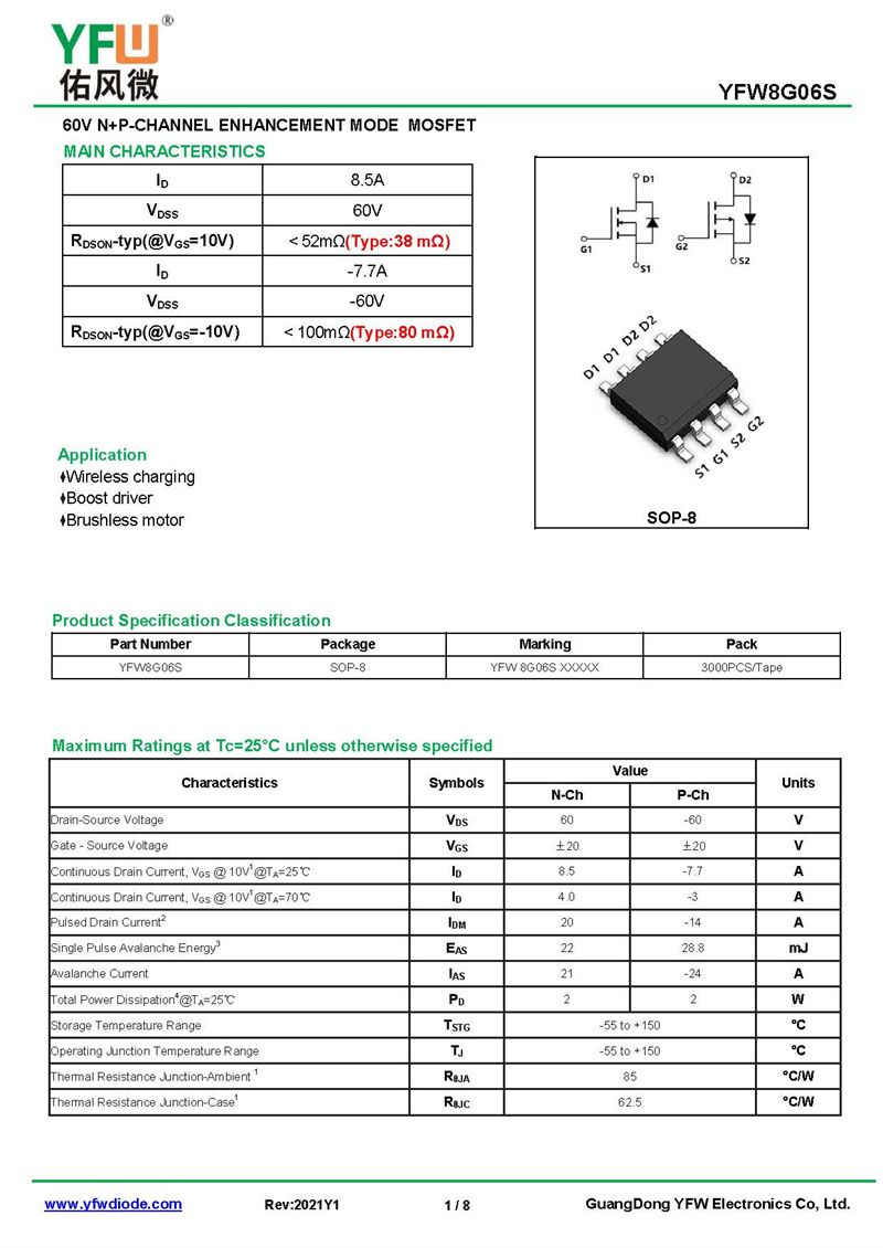 場效應管YFW8G06S 規格書_價格_PDF手冊-廣東佑風微原廠YFW8G06S SOP-8_(YFW佑風微)品牌