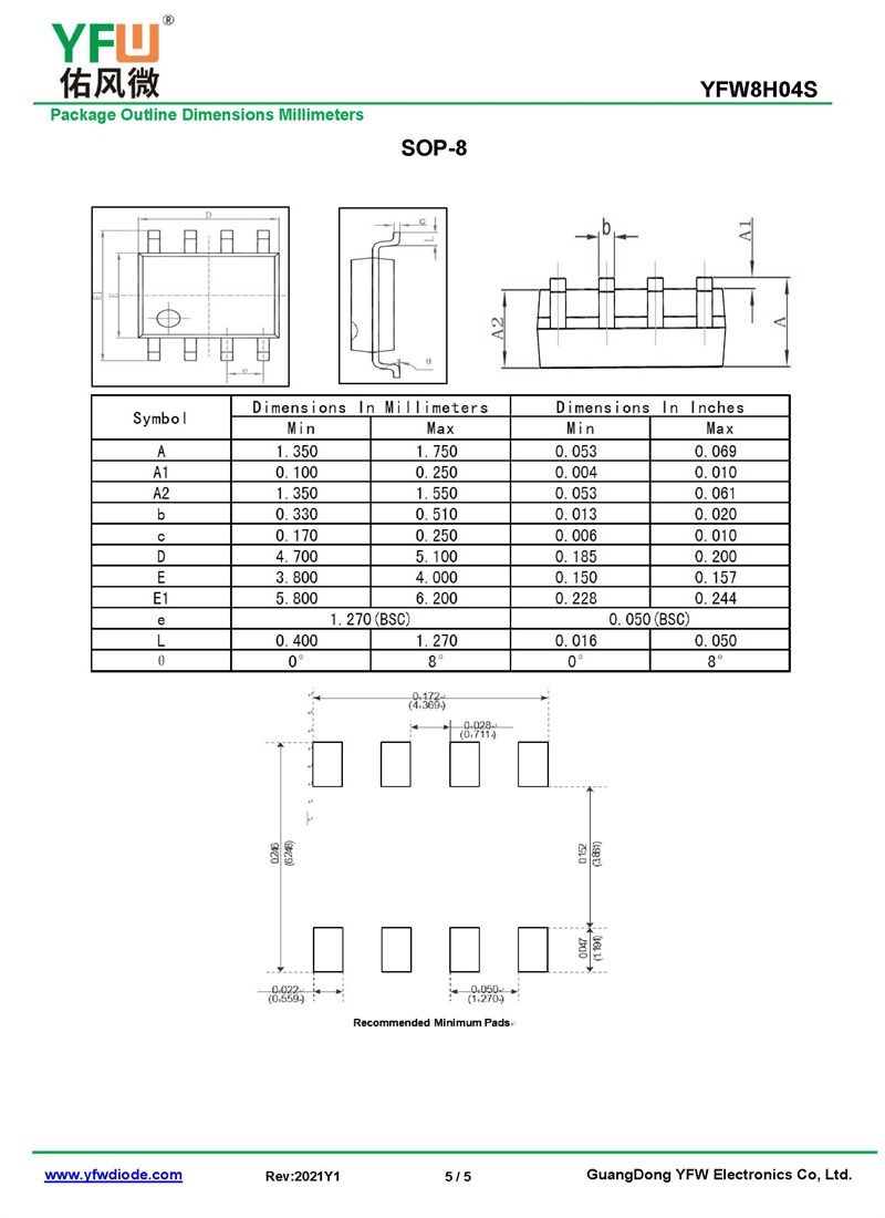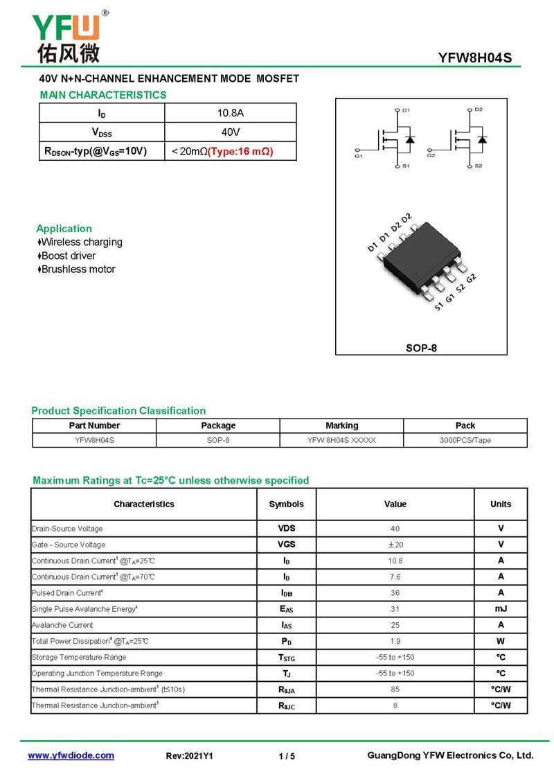 場效應管YFW8H04S 規格書_價格_PDF手冊-廣東佑風微原廠YFW8H04S SOP-8_(YFW佑風微)品牌