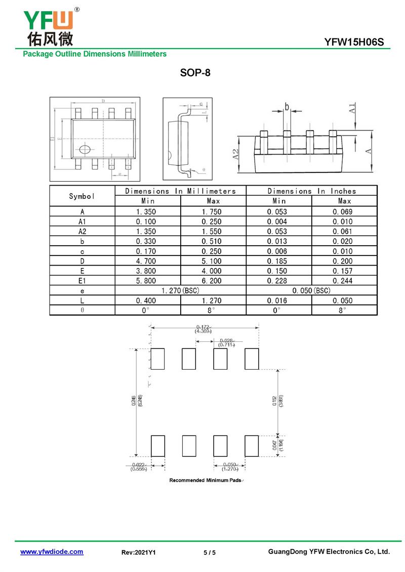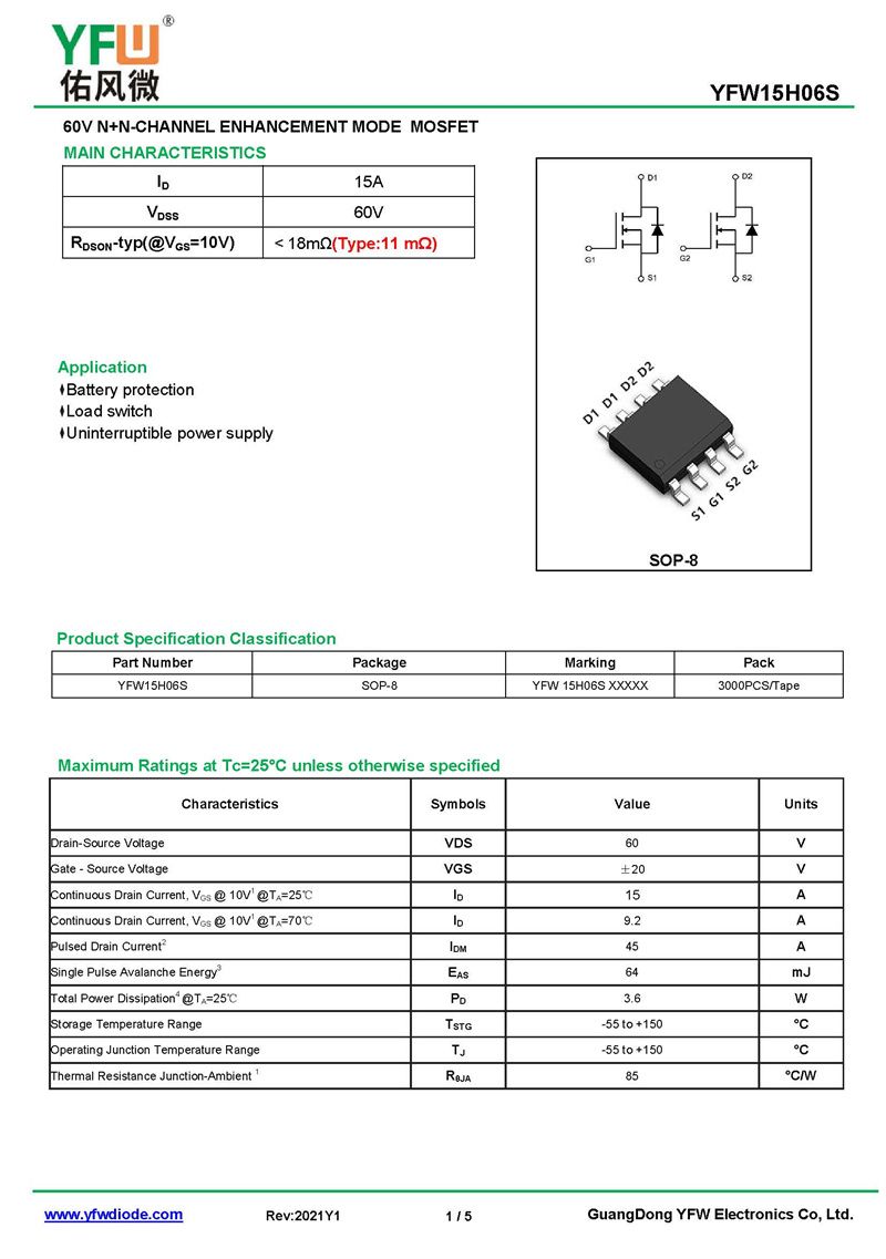 場效應管YFW15H06S 規格書_價格_PDF手冊-廣東佑風微原廠YFW15H06S SOP-8_(YFW佑風微)品牌