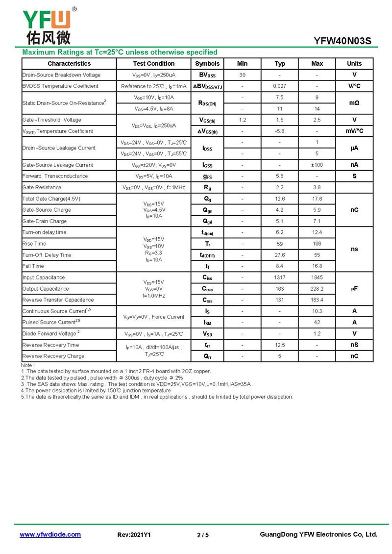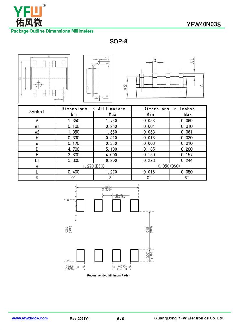 場效應管YFW40N03S 規格書_價格_PDF手冊-廣東佑風微原廠YFW40N03S SOP-8_(YFW佑風微)品牌
