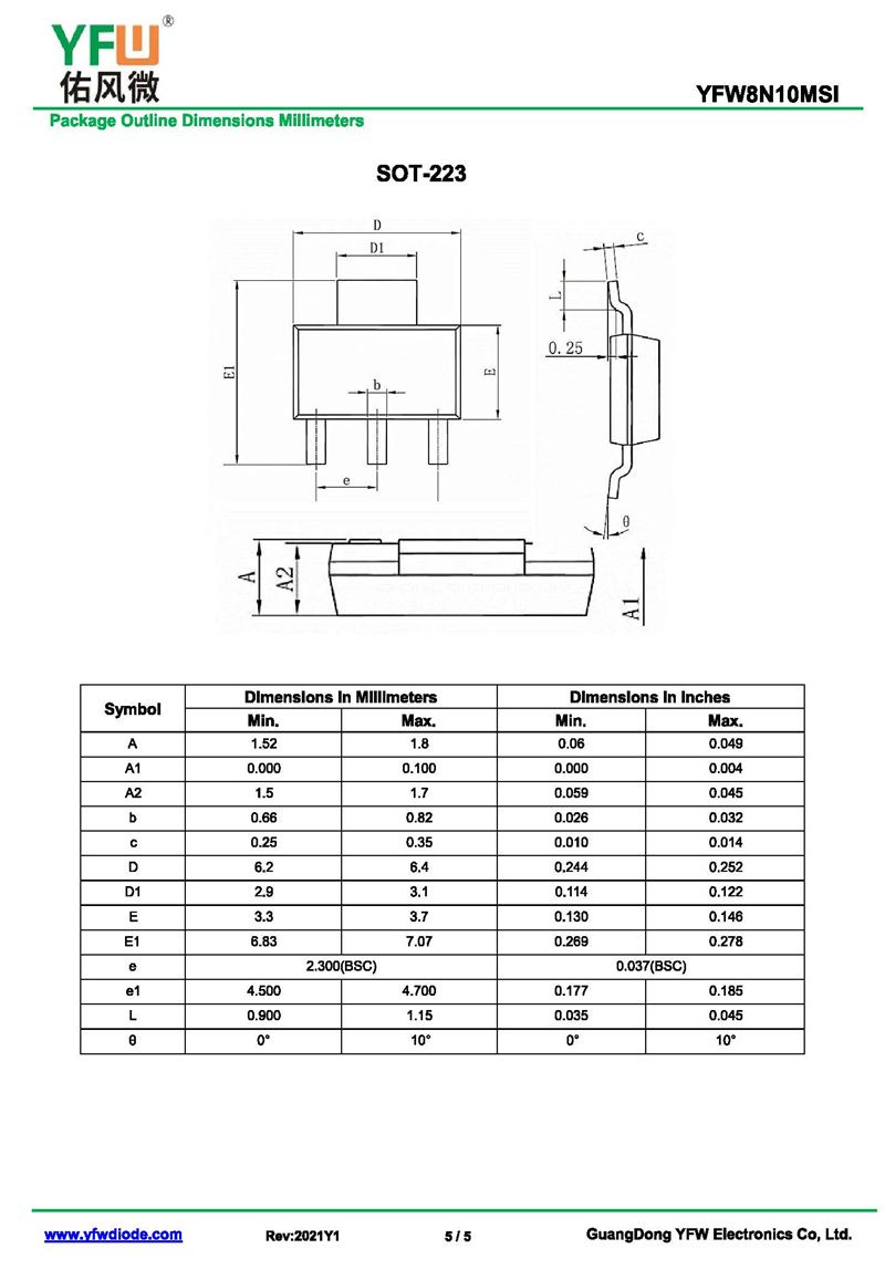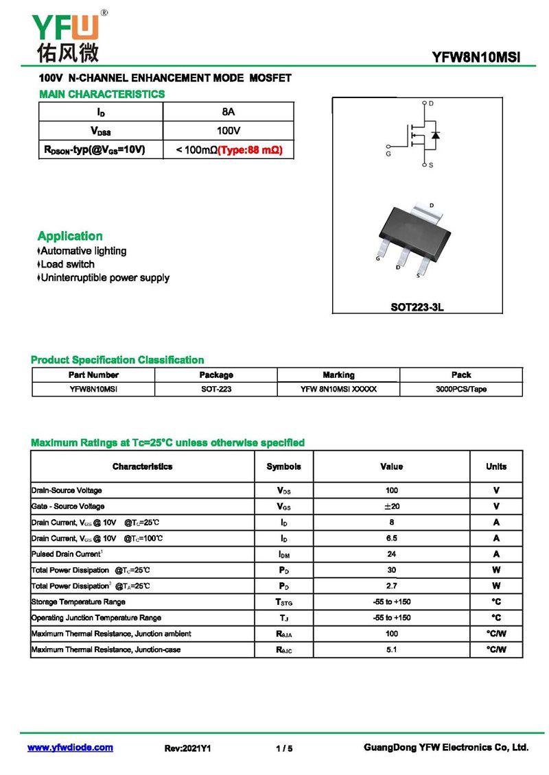 場效應(yīng)管YFW8N10MSI 規(guī)格書_價格_PDF手冊-廣東佑風(fēng)微原廠YFW8N10MSI SOT-223_(YFW佑風(fēng)微)品牌