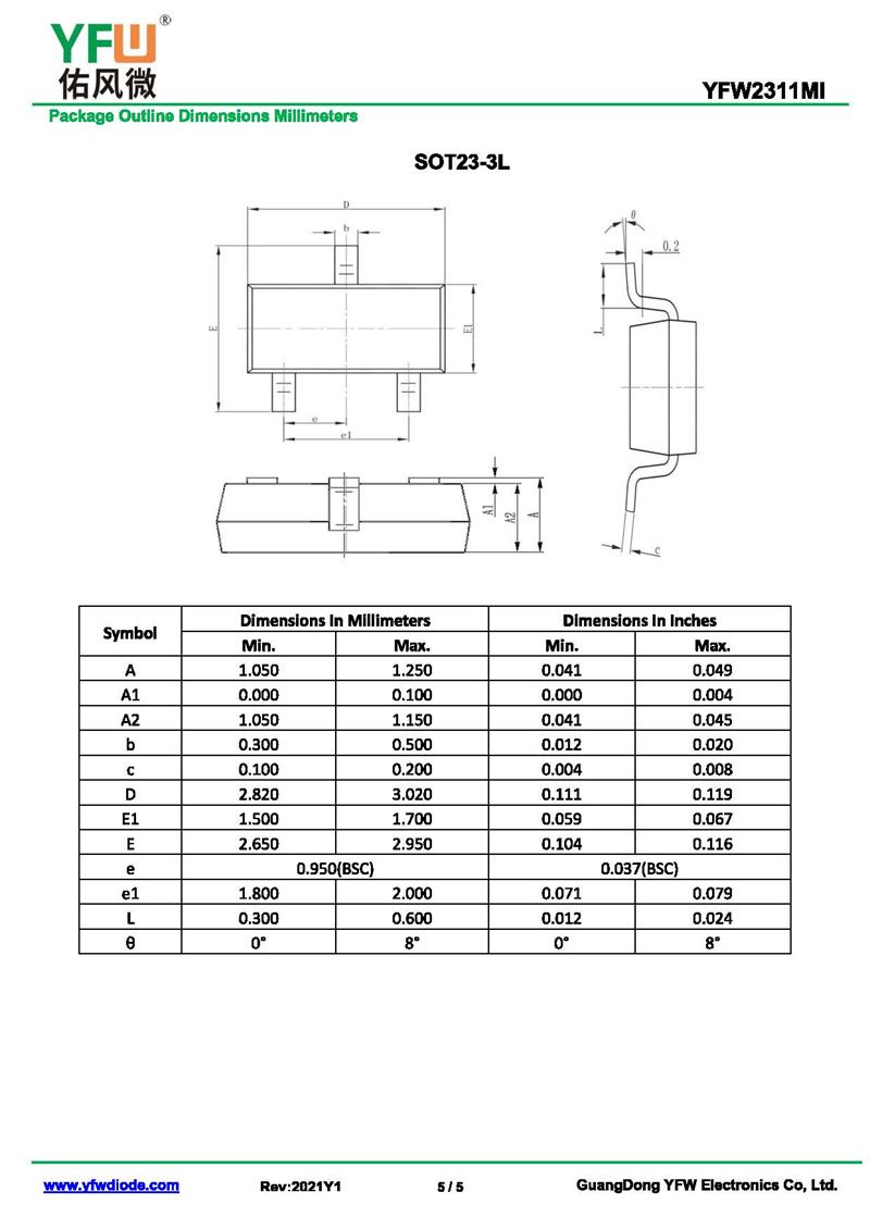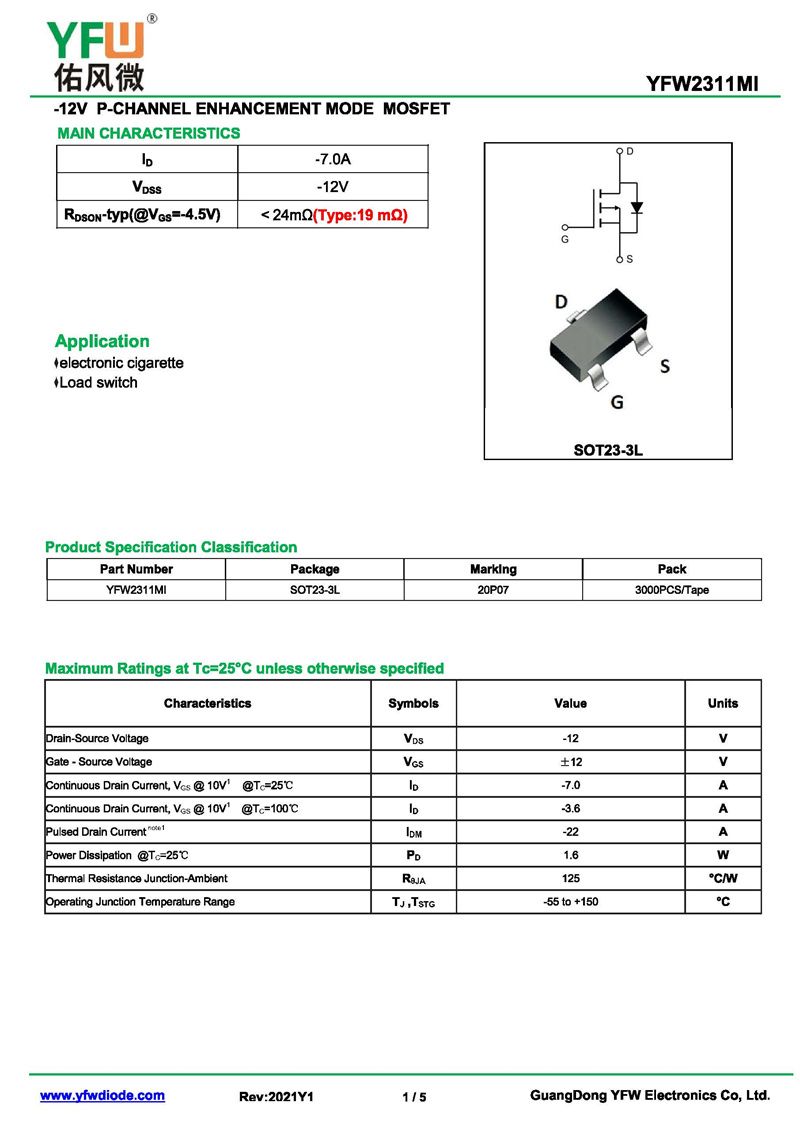 場效應管YFW2311MI 規格書_價格_PDF手冊-廣東佑風微原廠YFW2311MI SOT-23_(YFW佑風微)品牌