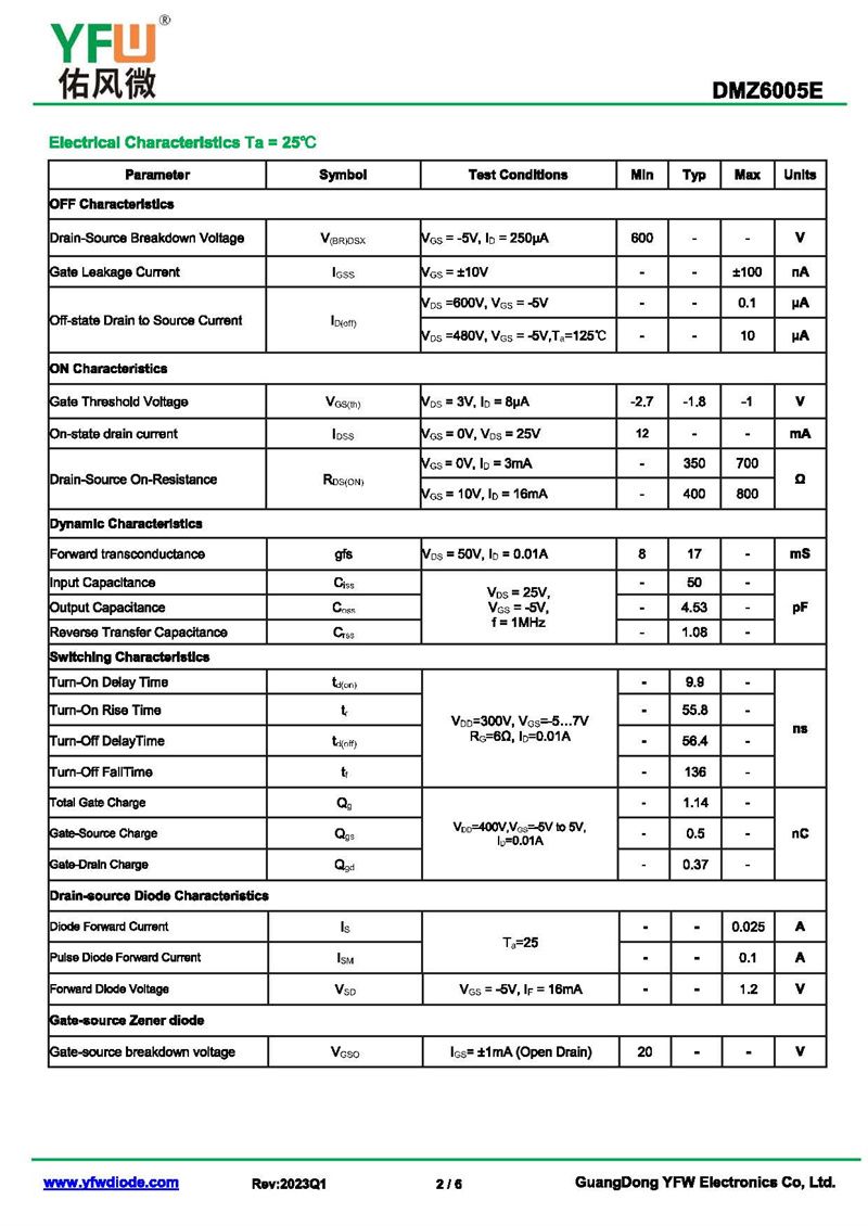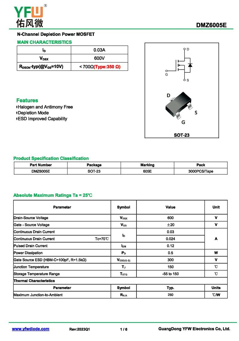 場效應管DMZ6005E 規格書_價格_PDF手冊-廣東佑風微原廠DMZ6005E SOT-23_(YFW佑風微)品牌