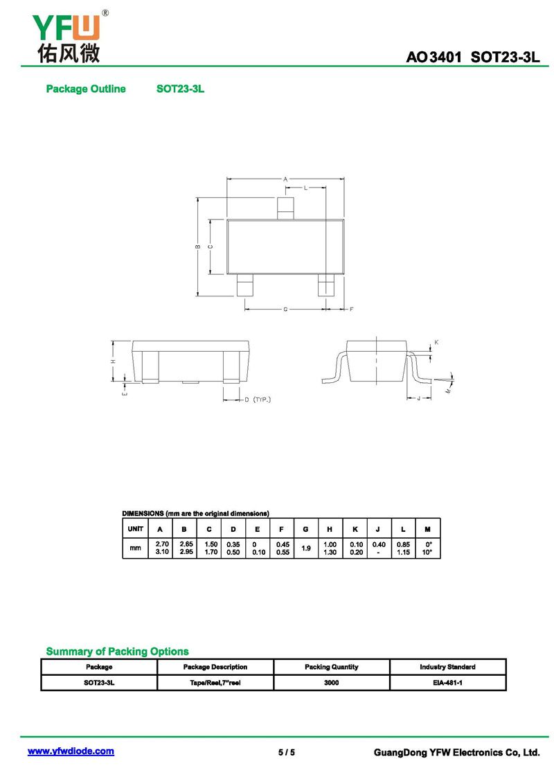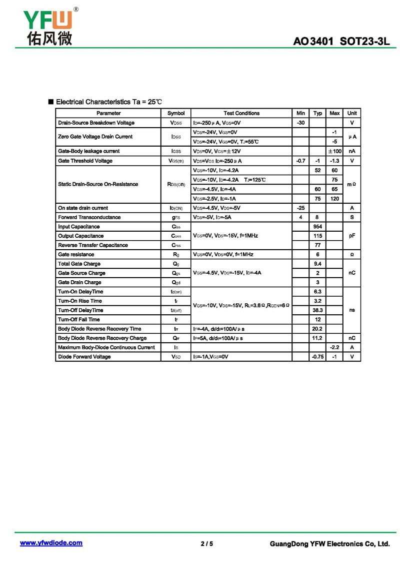 場效應管A03401 規格書_價格_PDF手冊-廣東佑風微原廠A03401 SOT-23-3L_(YFW佑風微)品牌