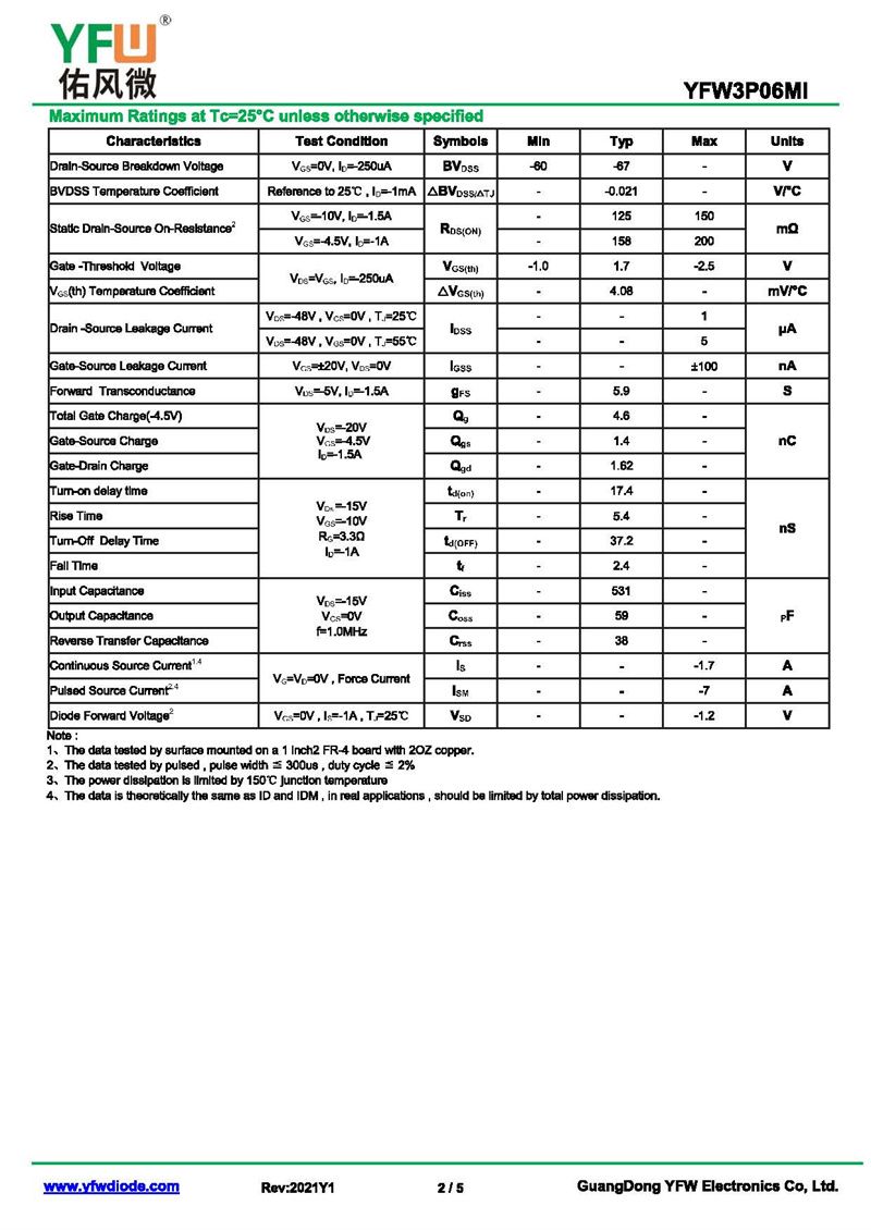 場效應管YFW3P06MI 規格書_價格_PDF手冊-廣東佑風微原廠YFW3P06MI SOT-23-3L_(YFW佑風微)品牌