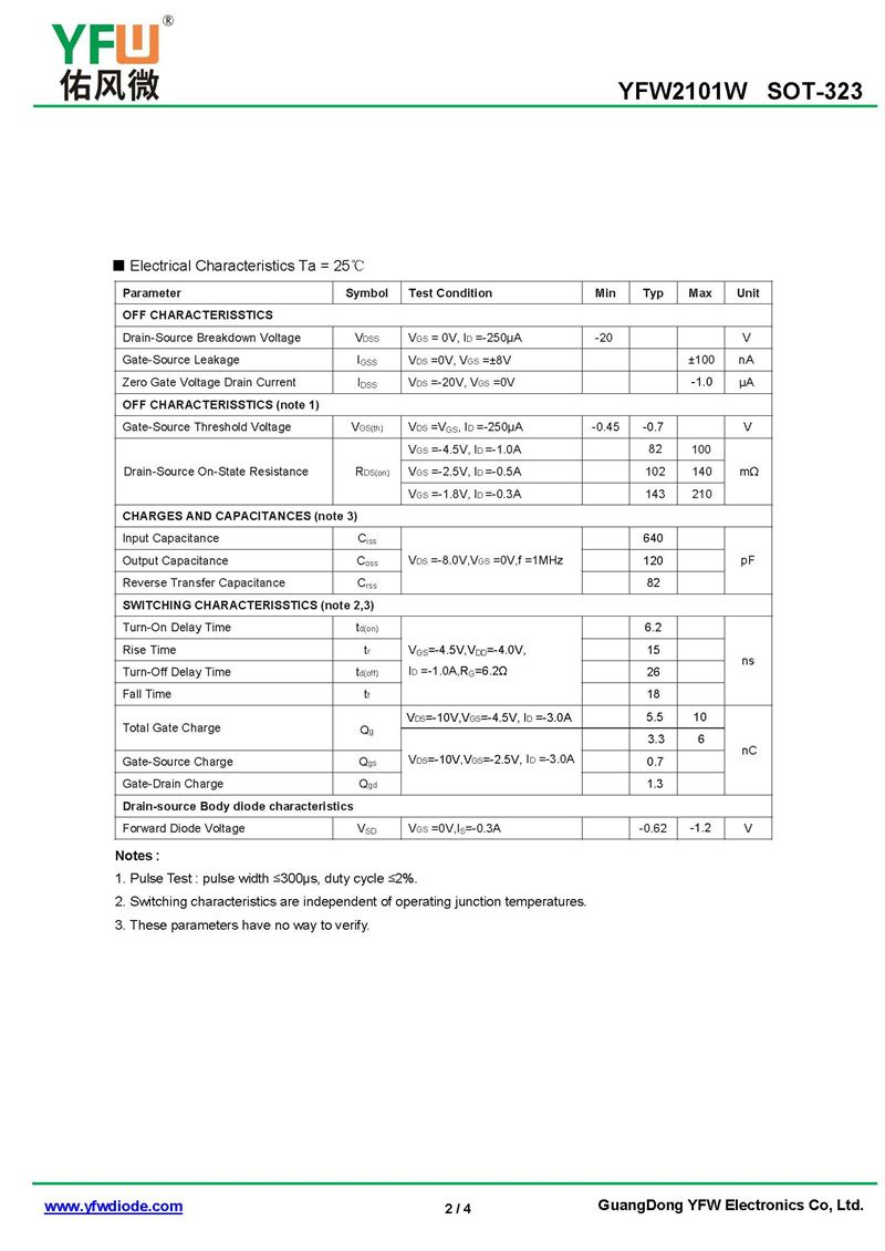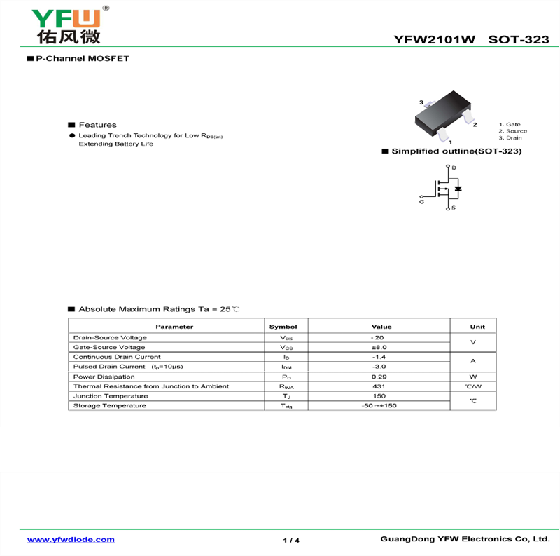 場效應管YFW2101W 規格書_價格_PDF手冊-廣東佑風微原廠YFW2101W SOT-323_(YFW佑風微)品牌