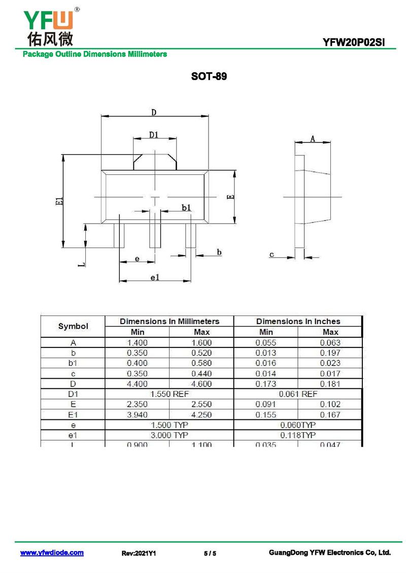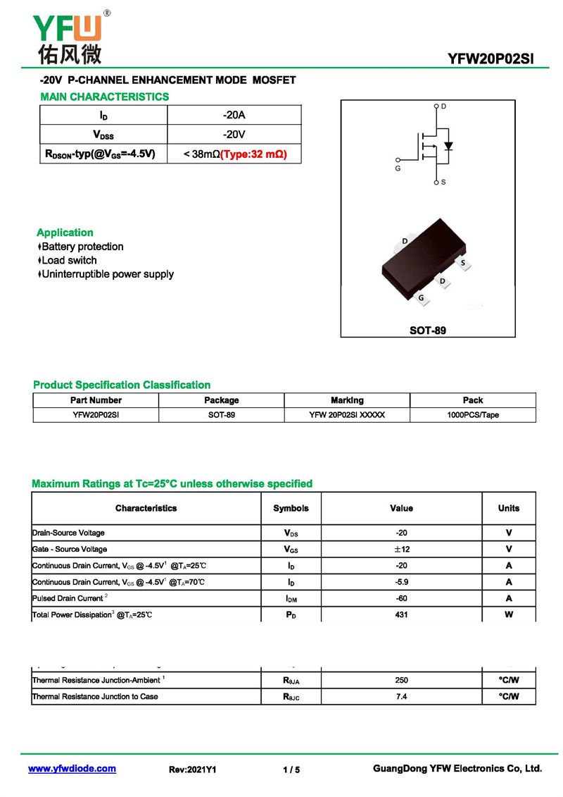 場效應管YFW20P02SI 規格書_價格_PDF手冊-廣東佑風微原廠YFW20P02SI SOT-89_(YFW佑風微)品牌