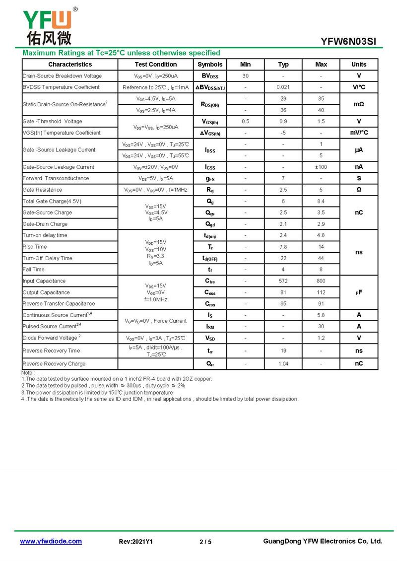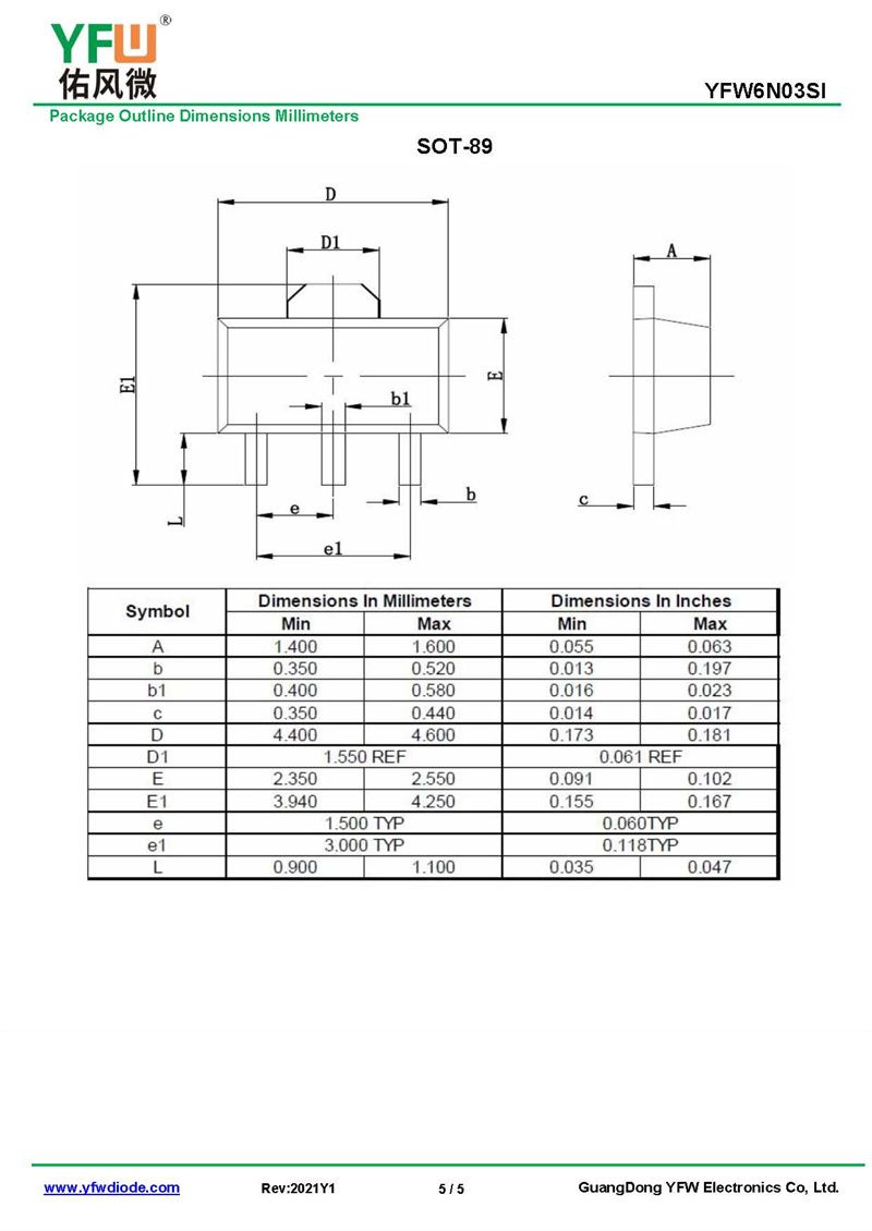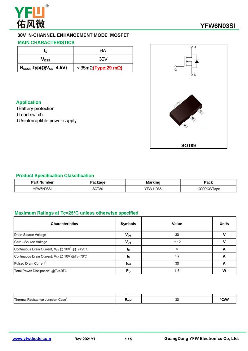 場效應(yīng)管YFW6N03SI 規(guī)格書_價格_PDF手冊-廣東佑風微原廠YFW6N03SI SOT-89_(YFW佑風微)品牌