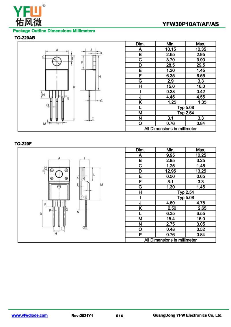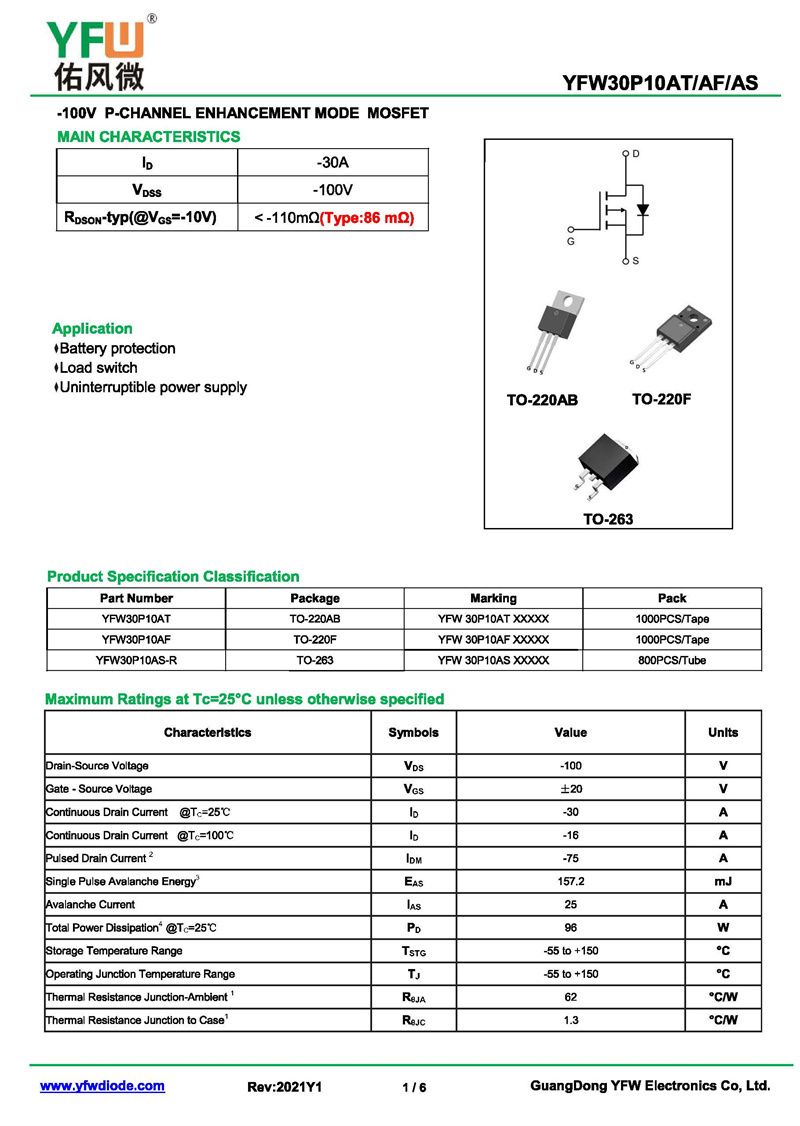 場效應管YFW30P10AT 規格書_價格_PDF手冊-廣東佑風微原廠YFW30P10AT TO-220AB_(YFW佑風微)品牌