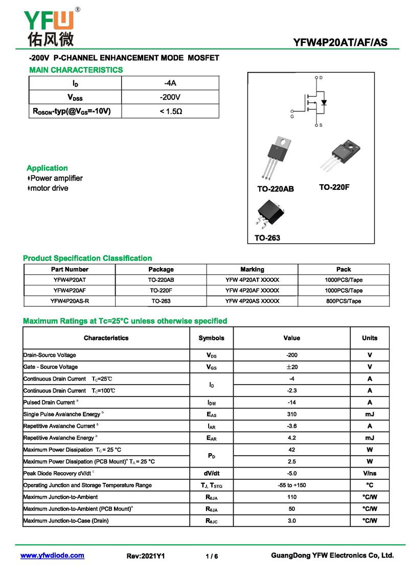 場效應(yīng)管YFW4P20AT 規(guī)格書_價格_PDF手冊-廣東佑風(fēng)微原廠YFW4P20AT TO-220AB_(YFW佑風(fēng)微)品牌