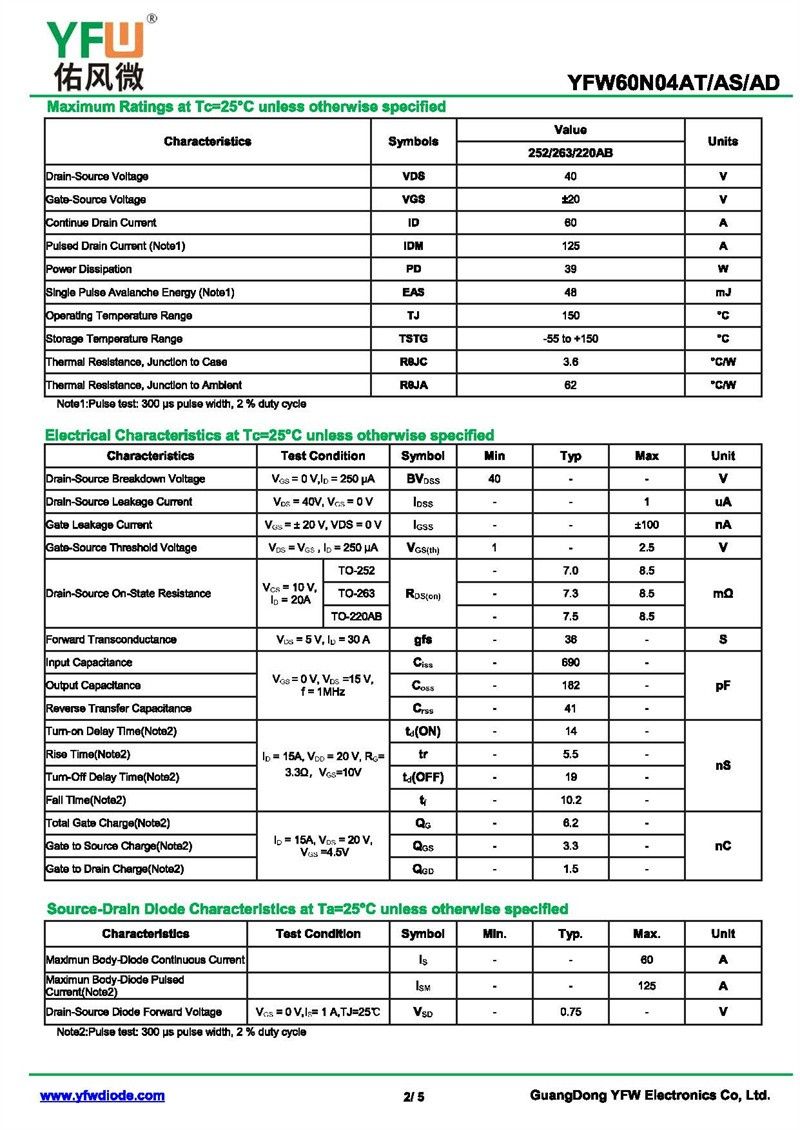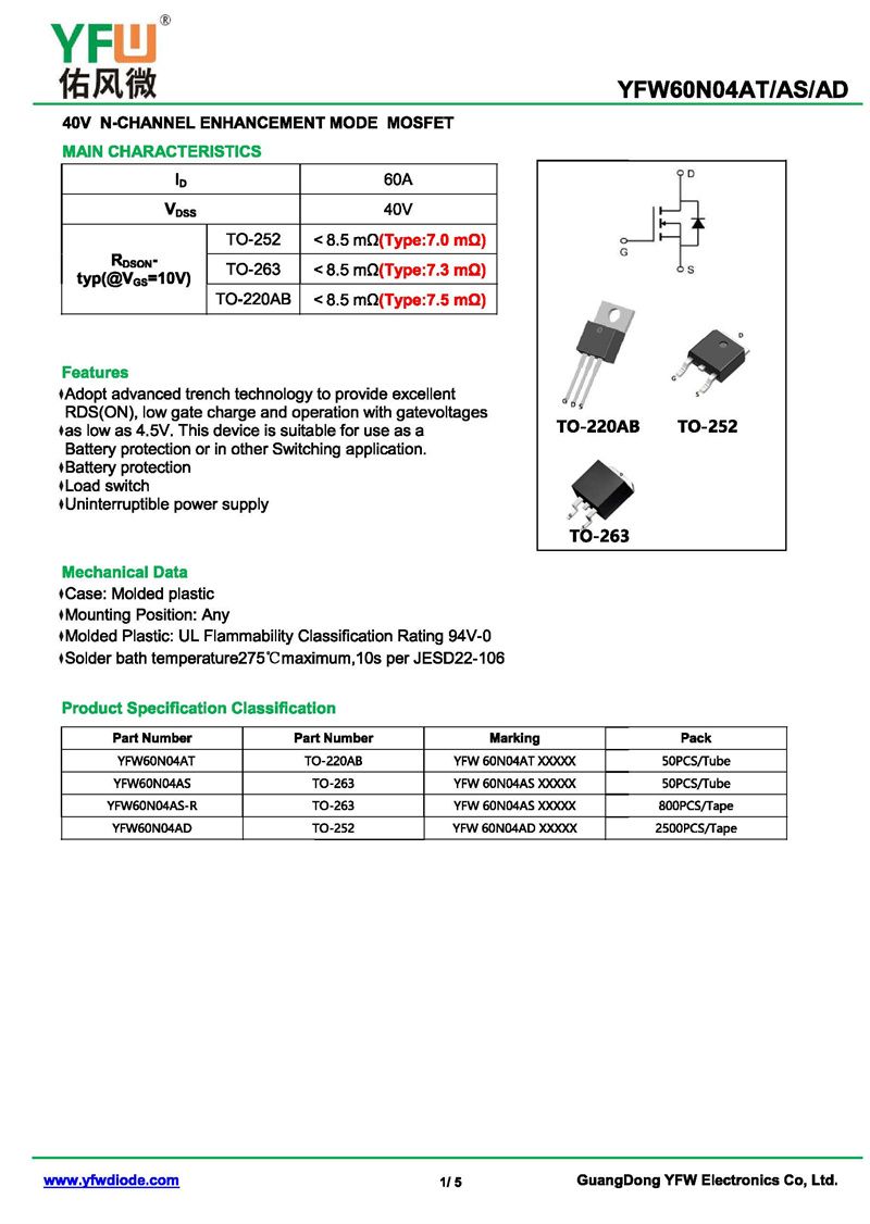 場(chǎng)效應(yīng)管YFW60N04AT 規(guī)格書(shū)_價(jià)格_PDF手冊(cè)-廣東佑風(fēng)微原廠YFW60N04AT TO-220AB_(YFW佑風(fēng)微)品牌