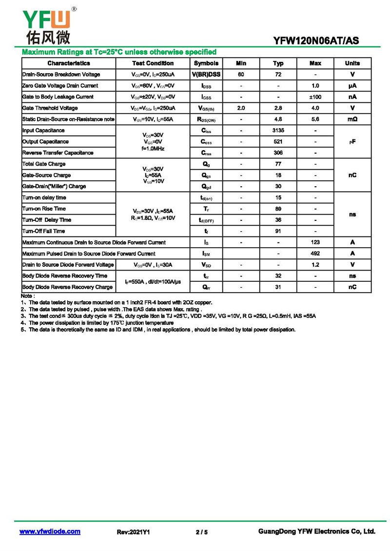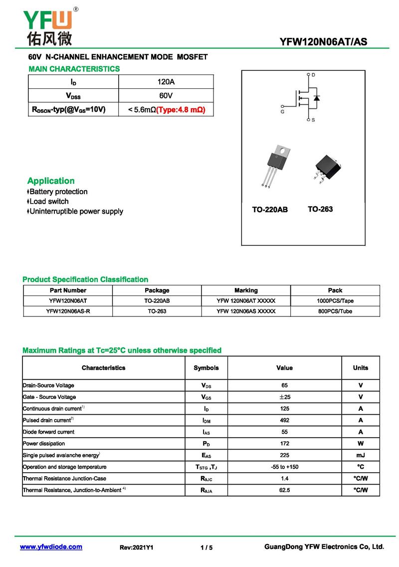 場效應(yīng)管YFW120N06AT 規(guī)格書_價格_PDF手冊-廣東佑風(fēng)微原廠YFW120N06AT TO-220AB_(YFW佑風(fēng)微)品牌