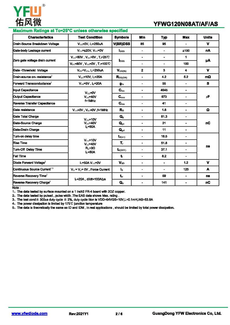 場效應管YFWG120N08AT 規格書_價格_PDF手冊-廣東佑風微原廠YFWG120N08AT TO-220AB_(YFW佑風微)品牌