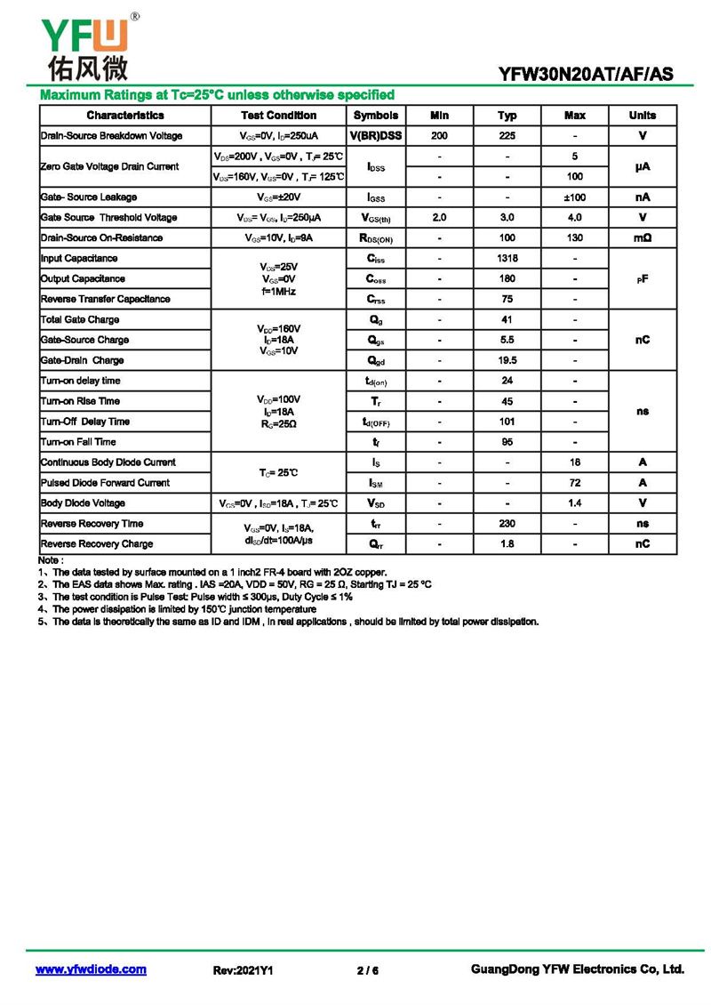 場效應管YFW30N20AT 規格書_價格_PDF手冊-廣東佑風微原廠YFW30N20AT TO-220AB_(YFW佑風微)品牌