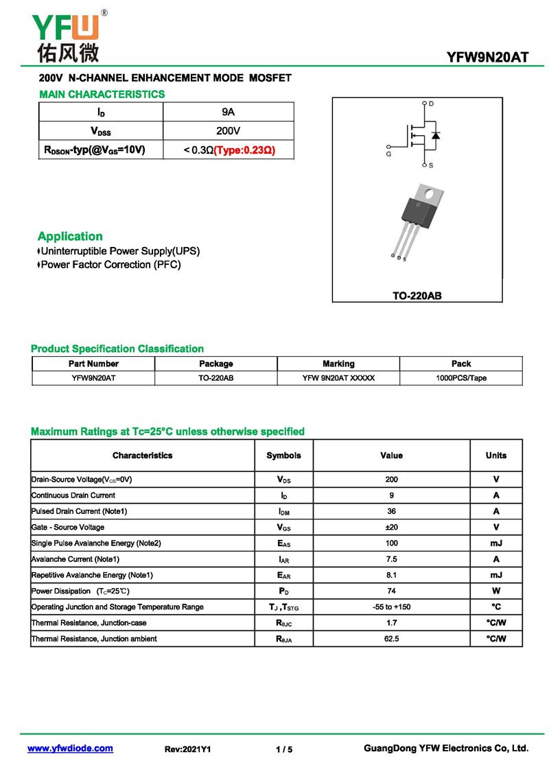 場(chǎng)效應(yīng)管YFW9N20AT 規(guī)格書_價(jià)格_PDF手冊(cè)-廣東佑風(fēng)微原廠YFW9N20AT TO-220AB_(YFW佑風(fēng)微)品牌