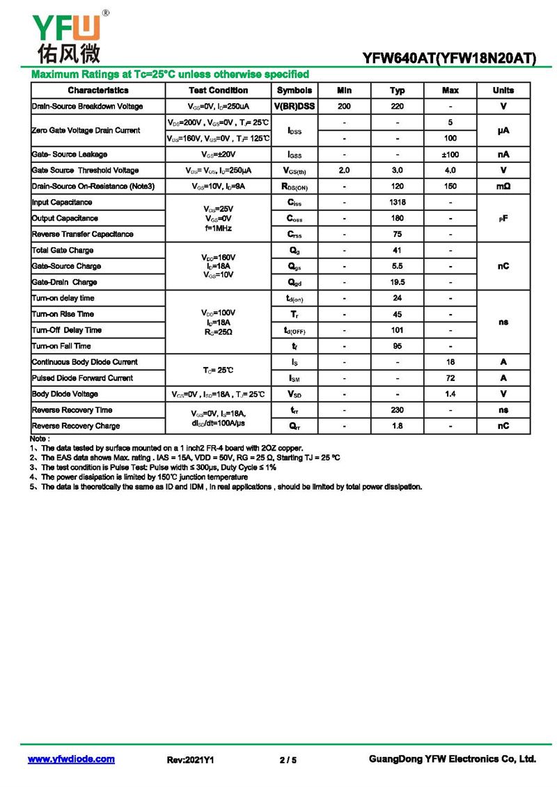 場效應管YFW640AT 規(guī)格書_價格_PDF手冊-廣東佑風微原廠YFW640AT TO-220AB_(YFW佑風微)品牌