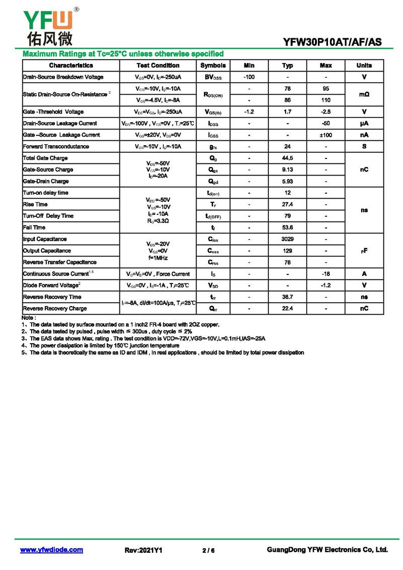 場效應管YFW30P10AF 規格書_價格_PDF手冊-廣東佑風微原廠YFW30P10AF TO-220F_(YFW佑風微)品牌