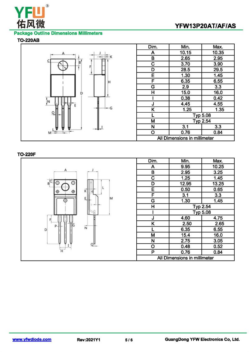 場效應管YFW13P20AF 規格書_價格_PDF手冊-廣東佑風微原廠YFW13P20AF TO-220F_(YFW佑風微)品牌
