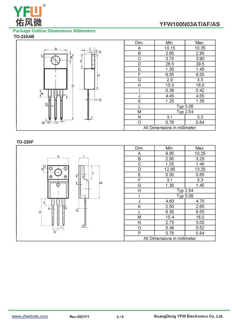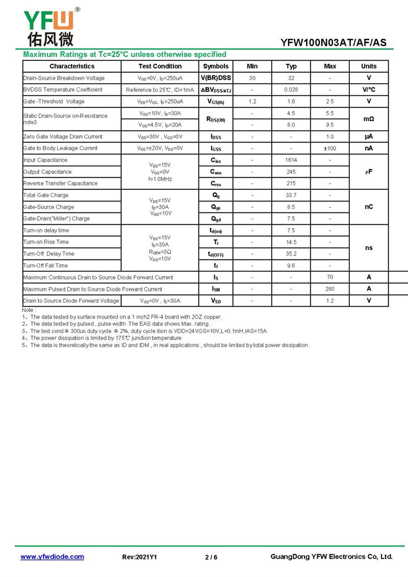 場效應管YFW100N03AF 規格書_價格_PDF手冊-廣東佑風微原廠YFW100N03AF TO-220F_(YFW佑風微)品牌