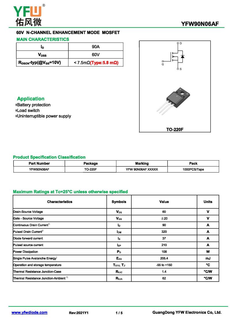 場效應(yīng)管YFW90N06AF 規(guī)格書_價格_PDF手冊-廣東佑風(fēng)微原廠YFW90N06AF TO-220F_(YFW佑風(fēng)微)品牌