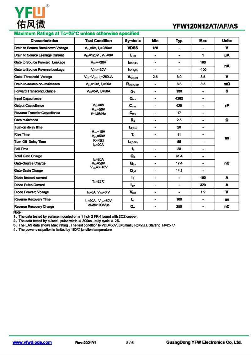 場效應(yīng)管YFW120N12AF 規(guī)格書_價(jià)格_PDF手冊(cè)-廣東佑風(fēng)微原廠YFW120N12AF TO-220F_(YFW佑風(fēng)微)品牌