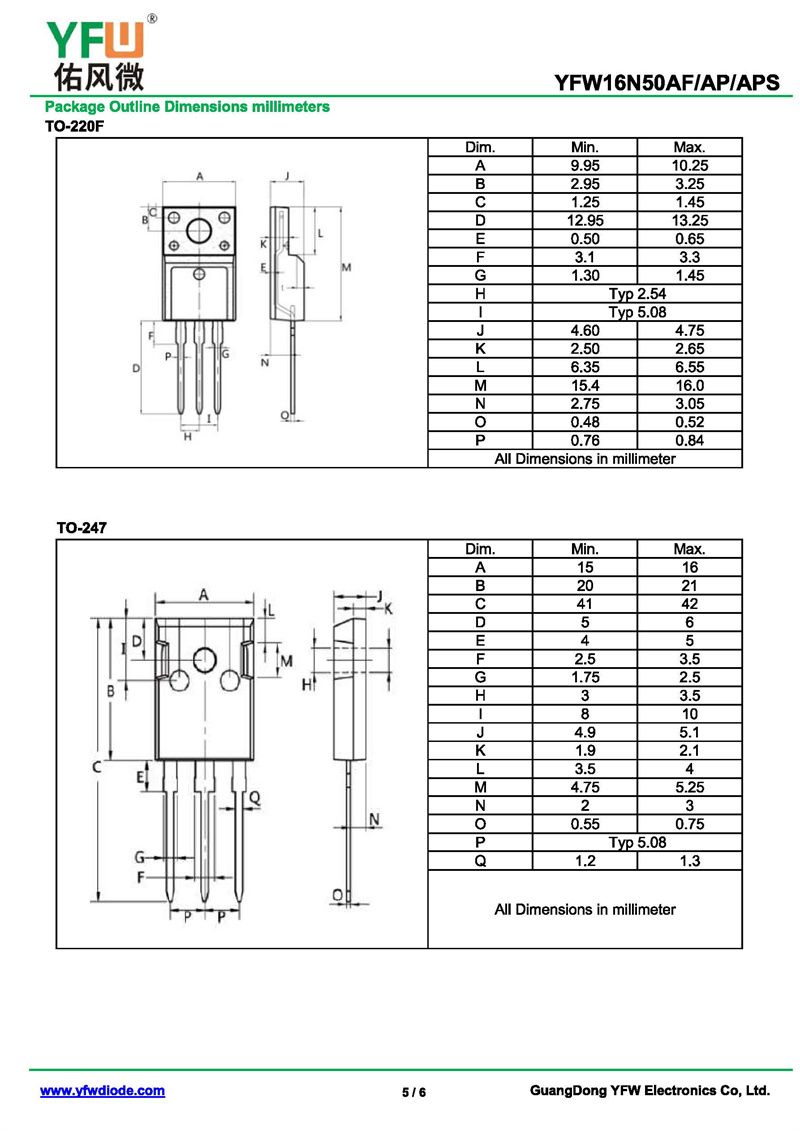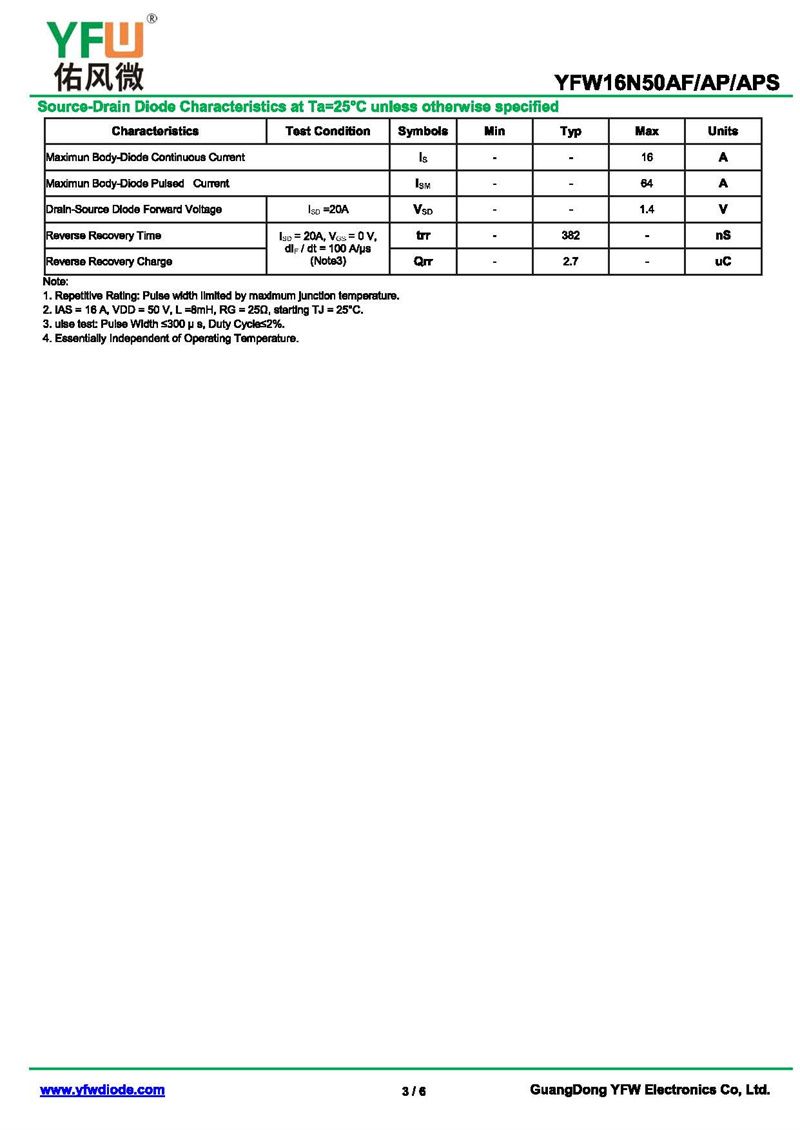 場效應管YFW16N50AF 規格書_價格_PDF手冊-廣東佑風微原廠YFW16N50AF TO-220F_(YFW佑風微)品牌