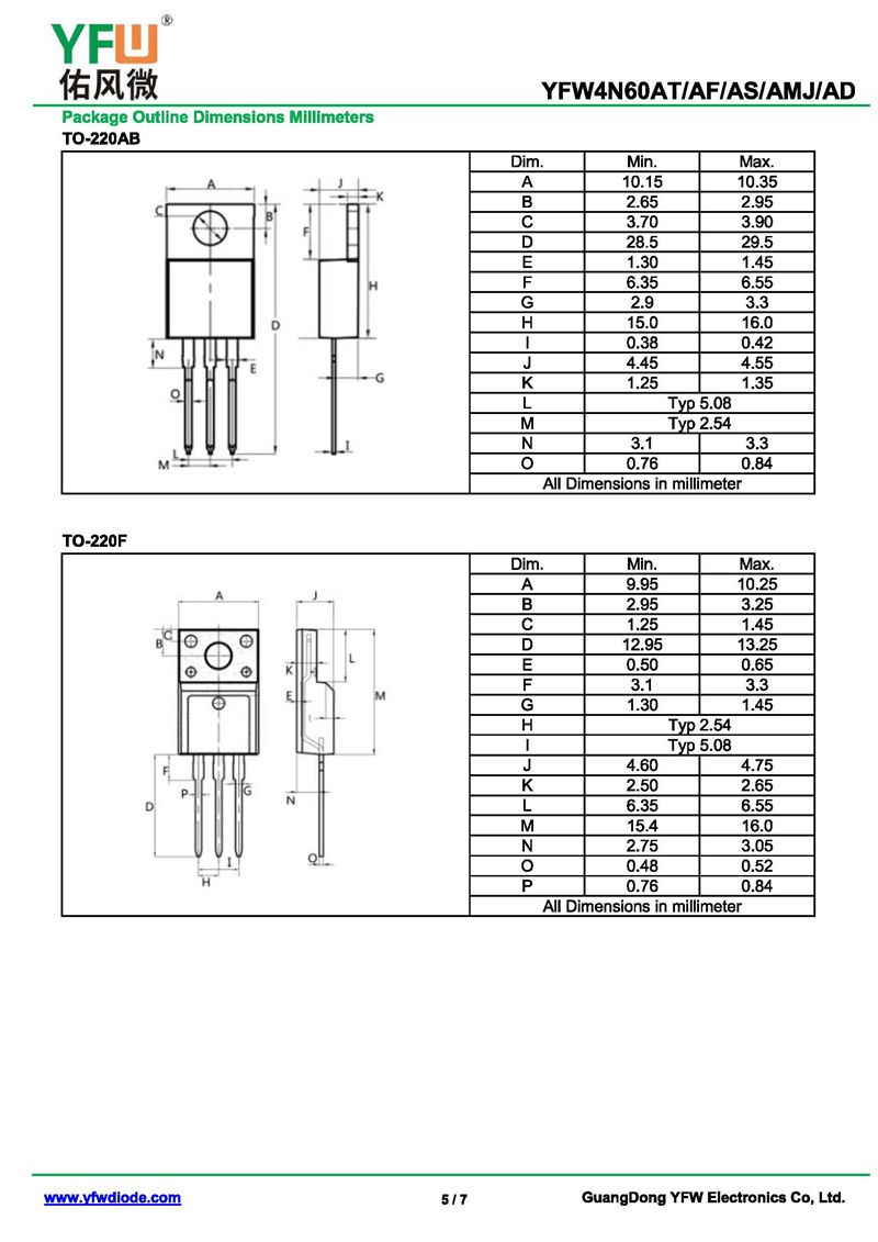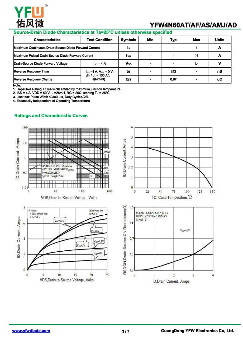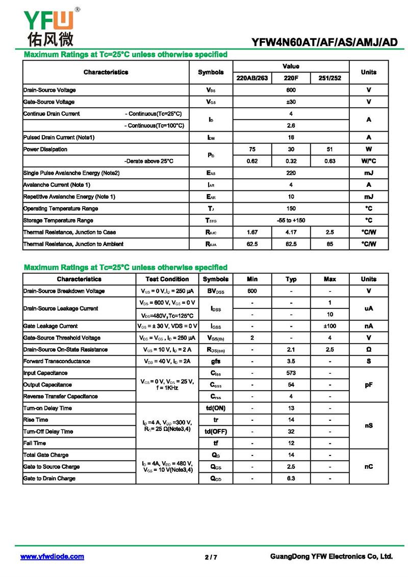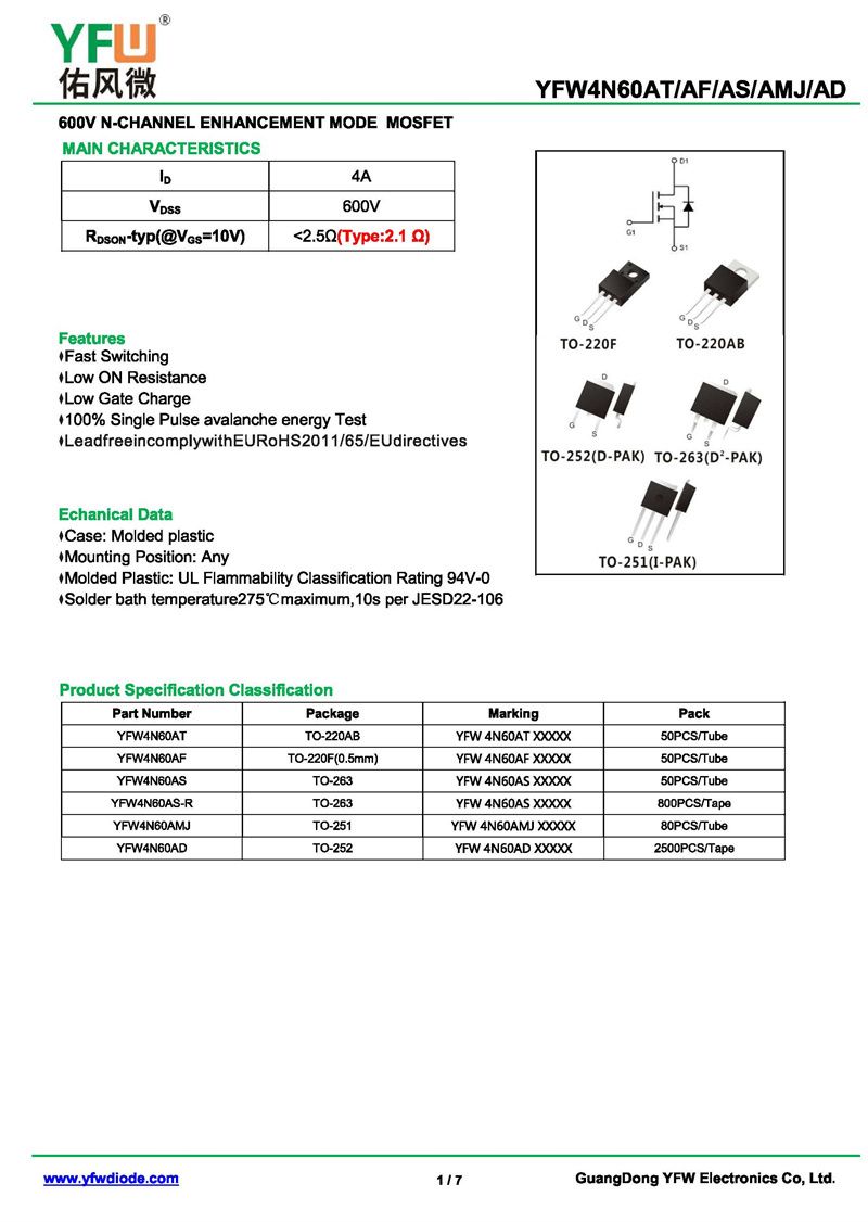 場效應管YFW4N60AF 規格書_價格_PDF手冊-廣東佑風微原廠YFW4N60AF TO-220F_(YFW佑風微)品牌