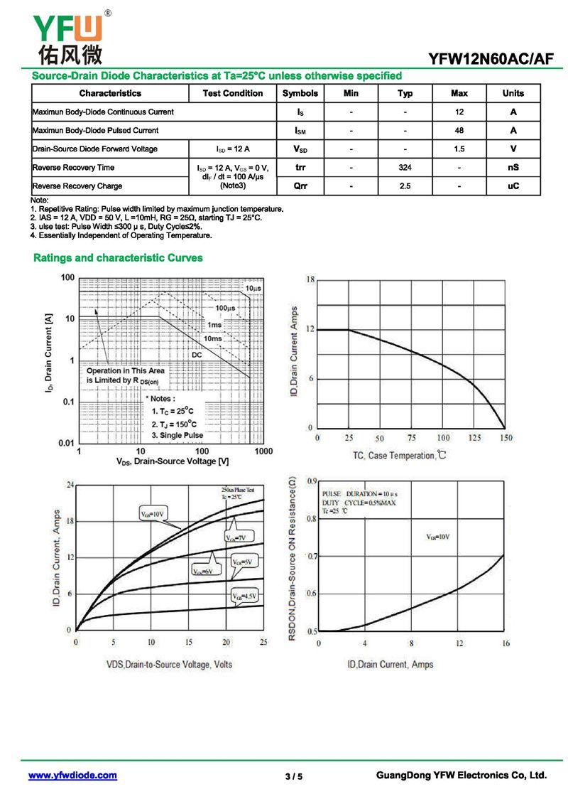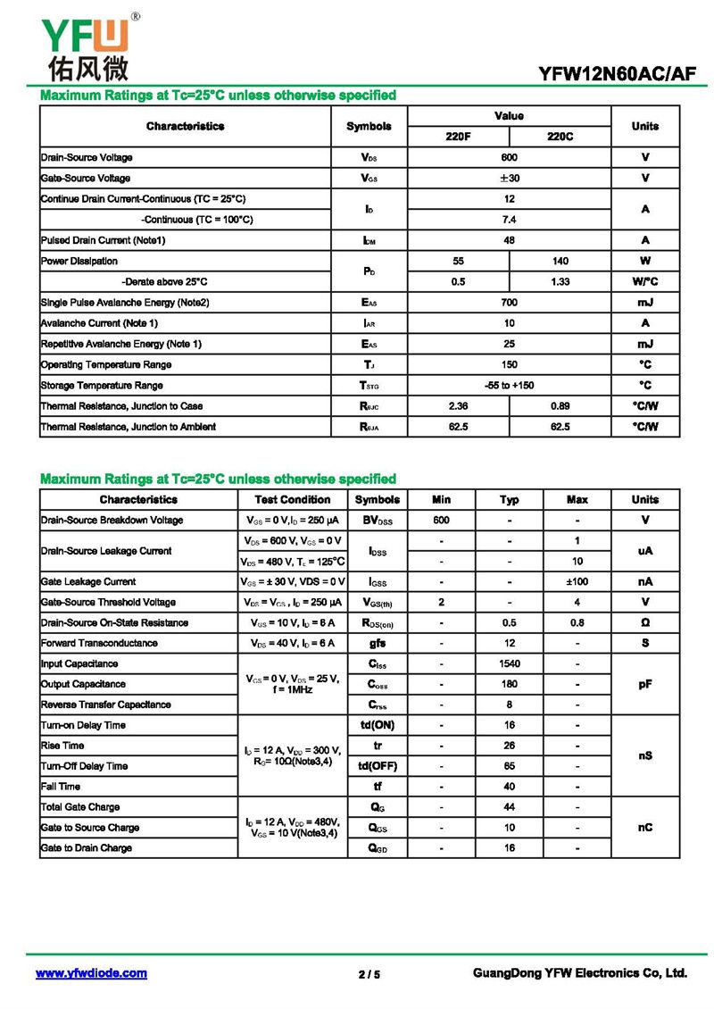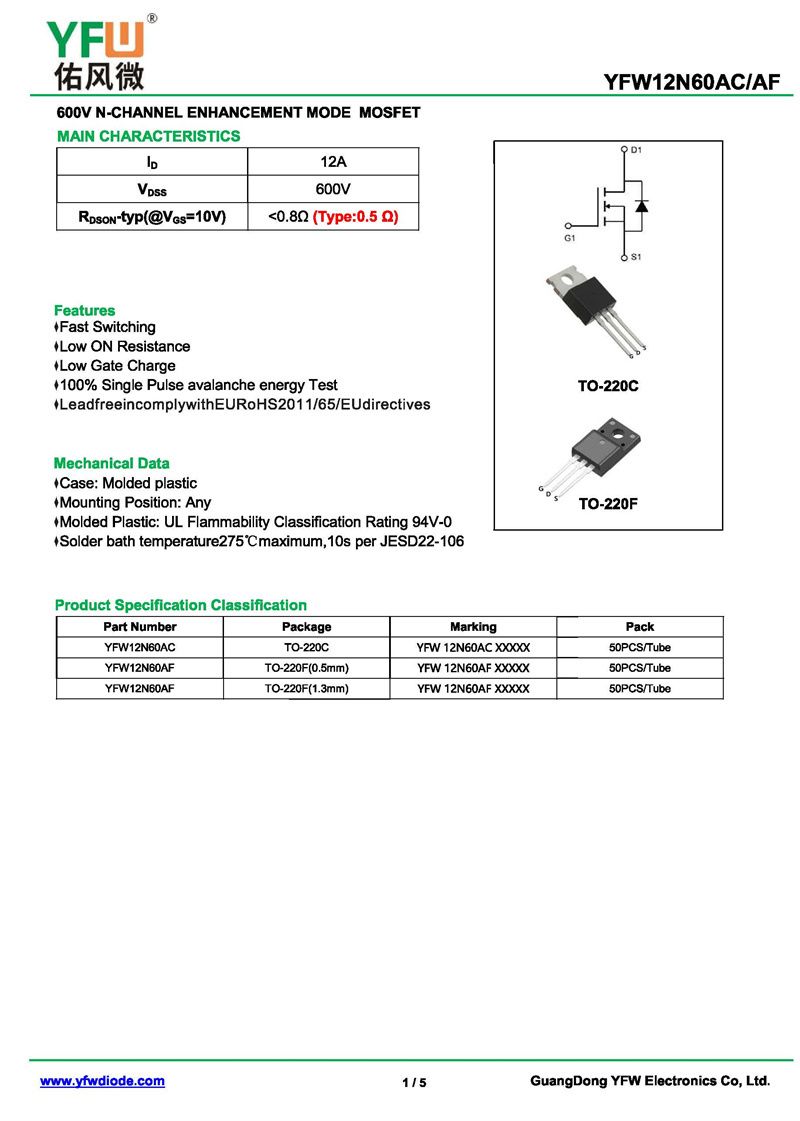 場效應管YFW12N60AF(1.3mm) 規(guī)格書_價格_PDF手冊-廣東佑風微原廠YFW12N60AF(1.3mm) TO-220F_(YFW佑風微)品牌