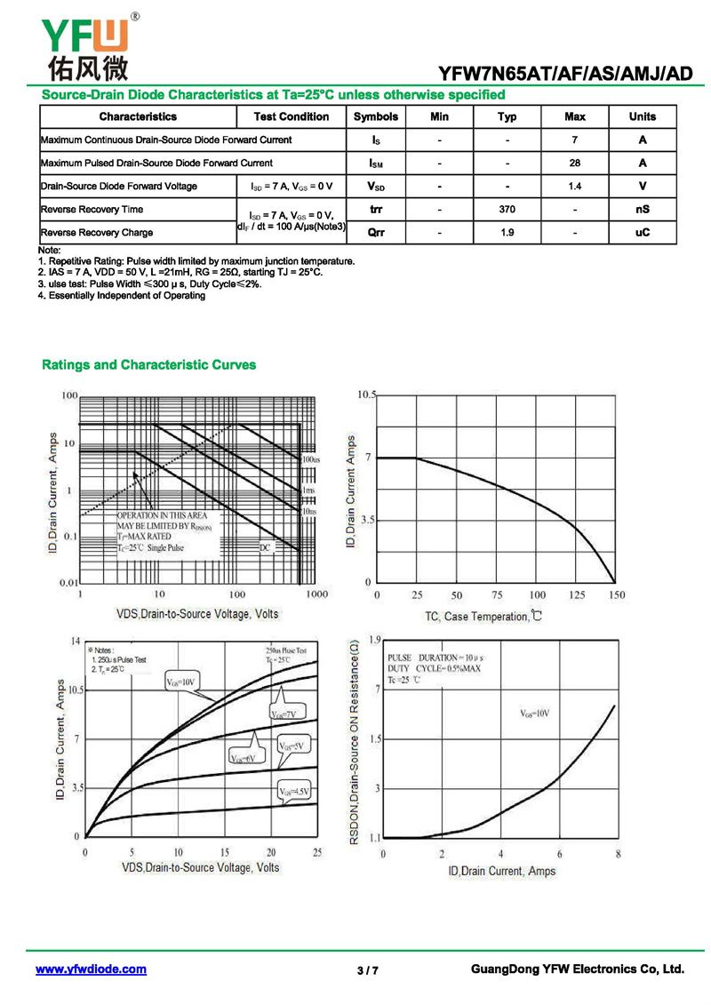 場效應管YFW7N65AF 規格書_價格_PDF手冊-廣東佑風微原廠YFW7N65AF TO-220F_(YFW佑風微)品牌