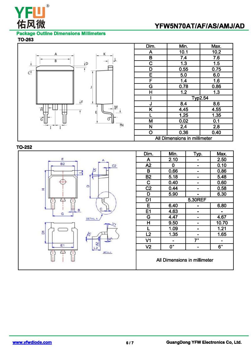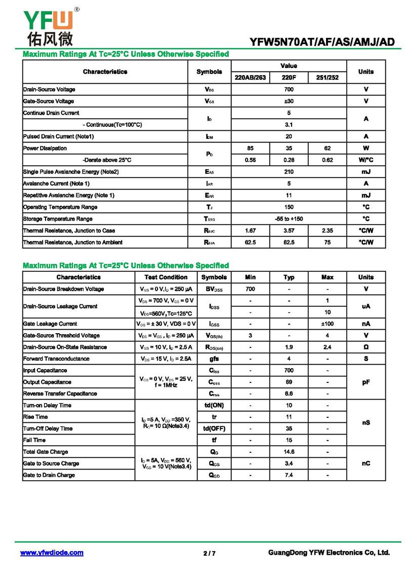 場效應管YFW5N70AF 規格書_價格_PDF手冊-廣東佑風微原廠YFW5N70AF TO-220F_(YFW佑風微)品牌