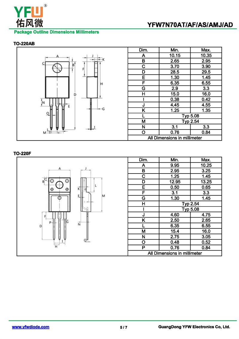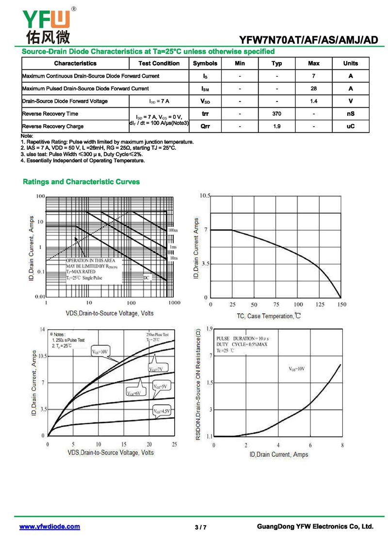 場效應管YFW7N70AF 規格書_價格_PDF手冊-廣東佑風微原廠YFW7N70AF TO-220F_(YFW佑風微)品牌