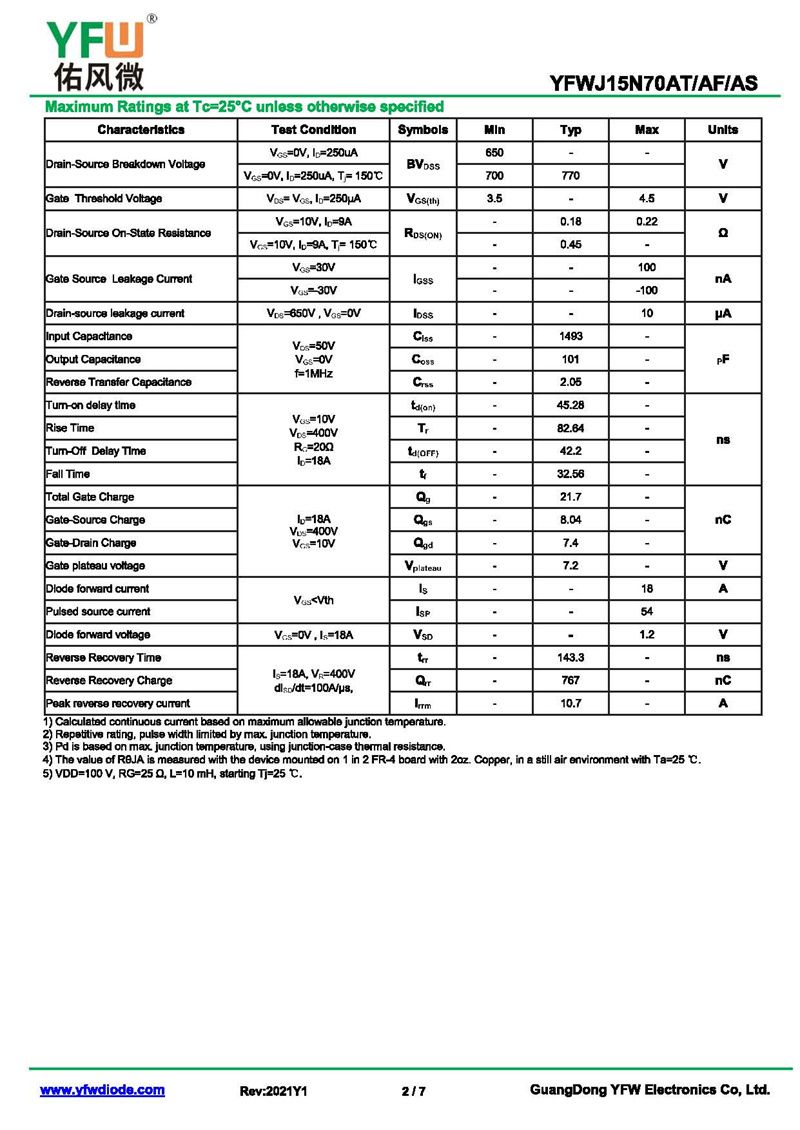 場效應管YFWJ15N70AF 規格書_價格_PDF手冊-廣東佑風微原廠YFWJ15N70AF TO-220F_(YFW佑風微)品牌