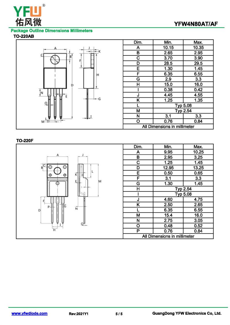 場效應管YFW6N80AF 規格書_價格_PDF手冊-廣東佑風微原廠YFW6N80AF TO-220F_(YFW佑風微)品牌