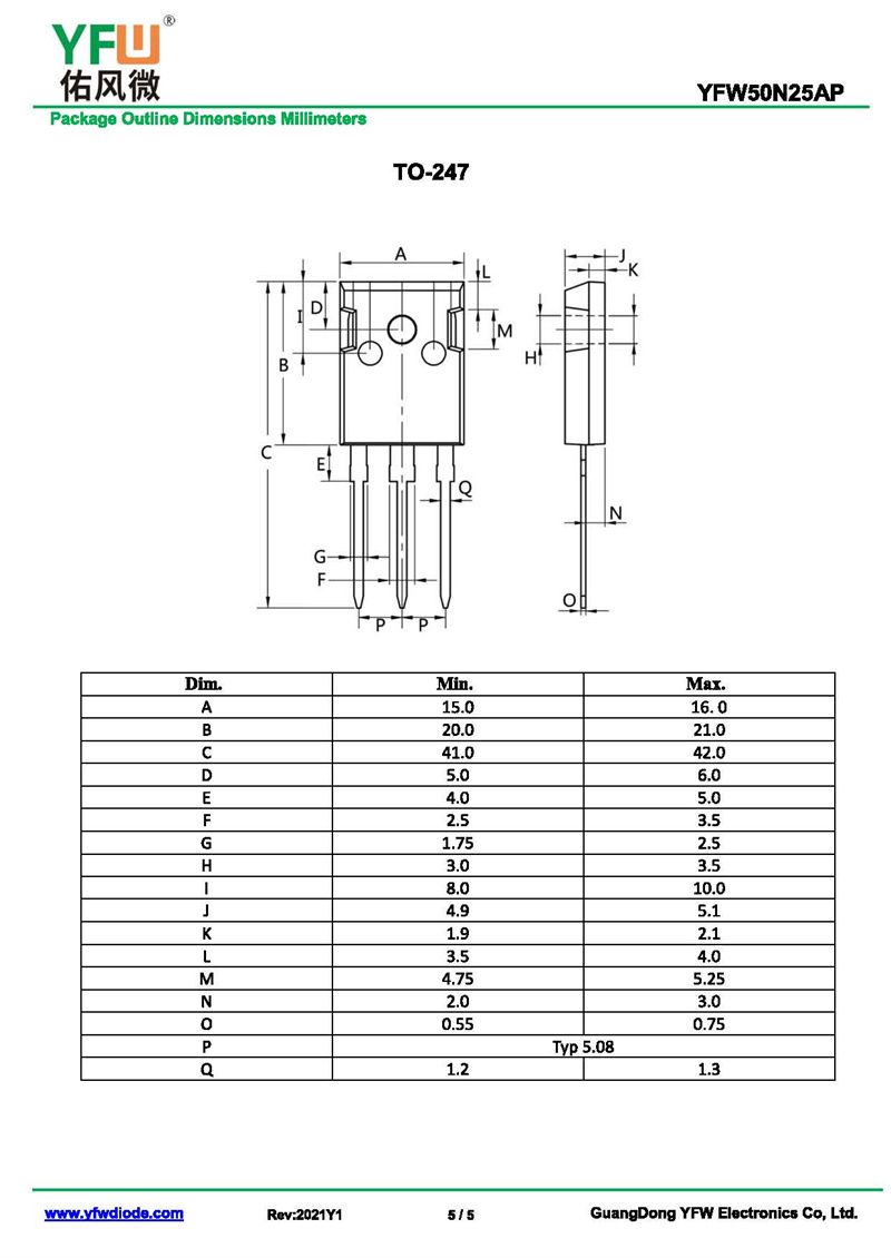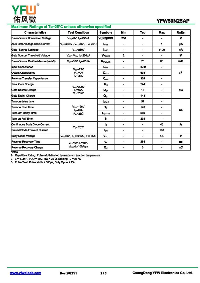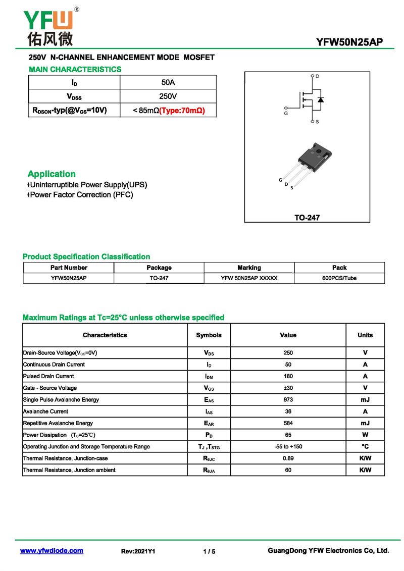 場效應(yīng)管YFW50N25AP 規(guī)格書_價格_PDF手冊-廣東佑風(fēng)微原廠YFW50N25AP TO-247_(YFW佑風(fēng)微)品牌