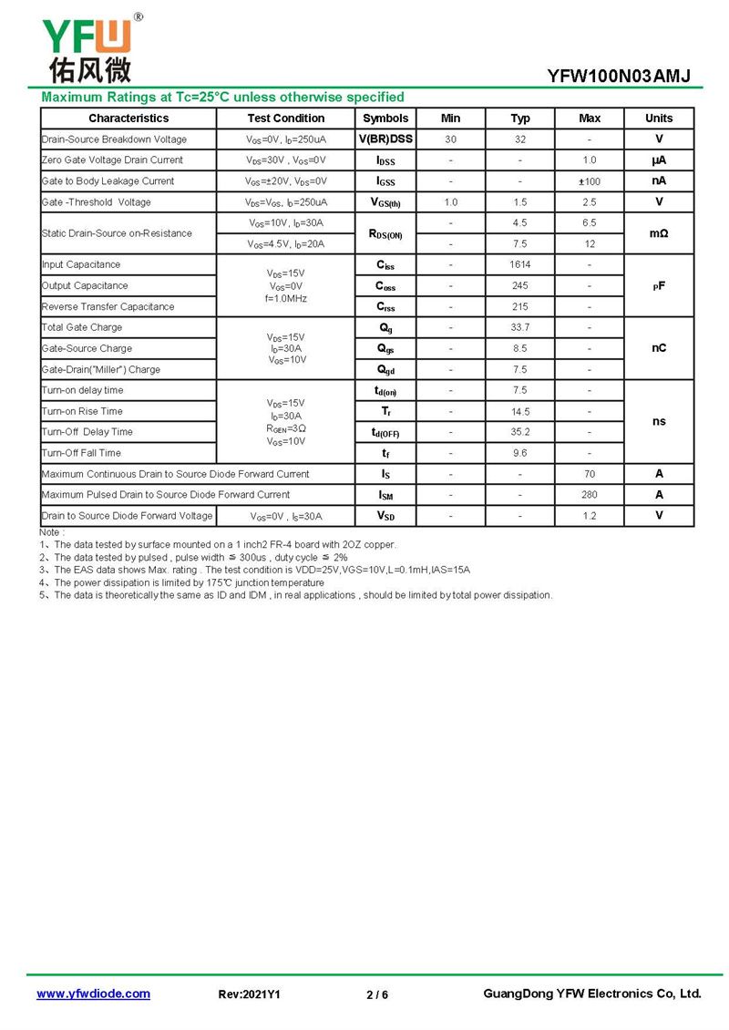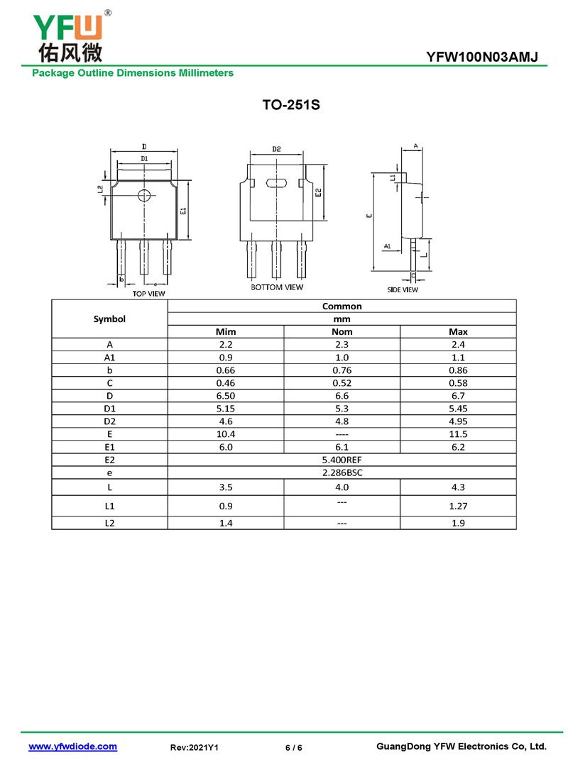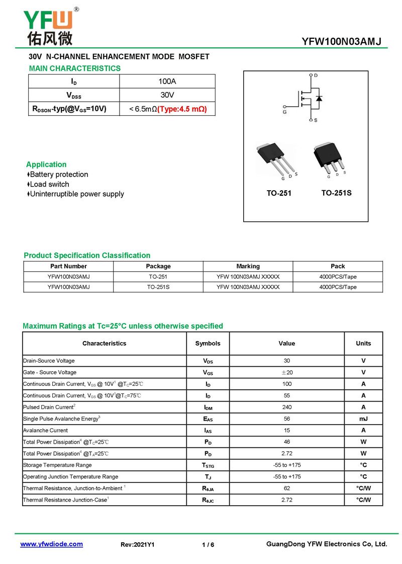場效應管YFW100N03AMJ規格書_價格_PDF手冊-廣東佑風微原廠YFW100N03AMJ TO-251_(YFW佑風微)品牌