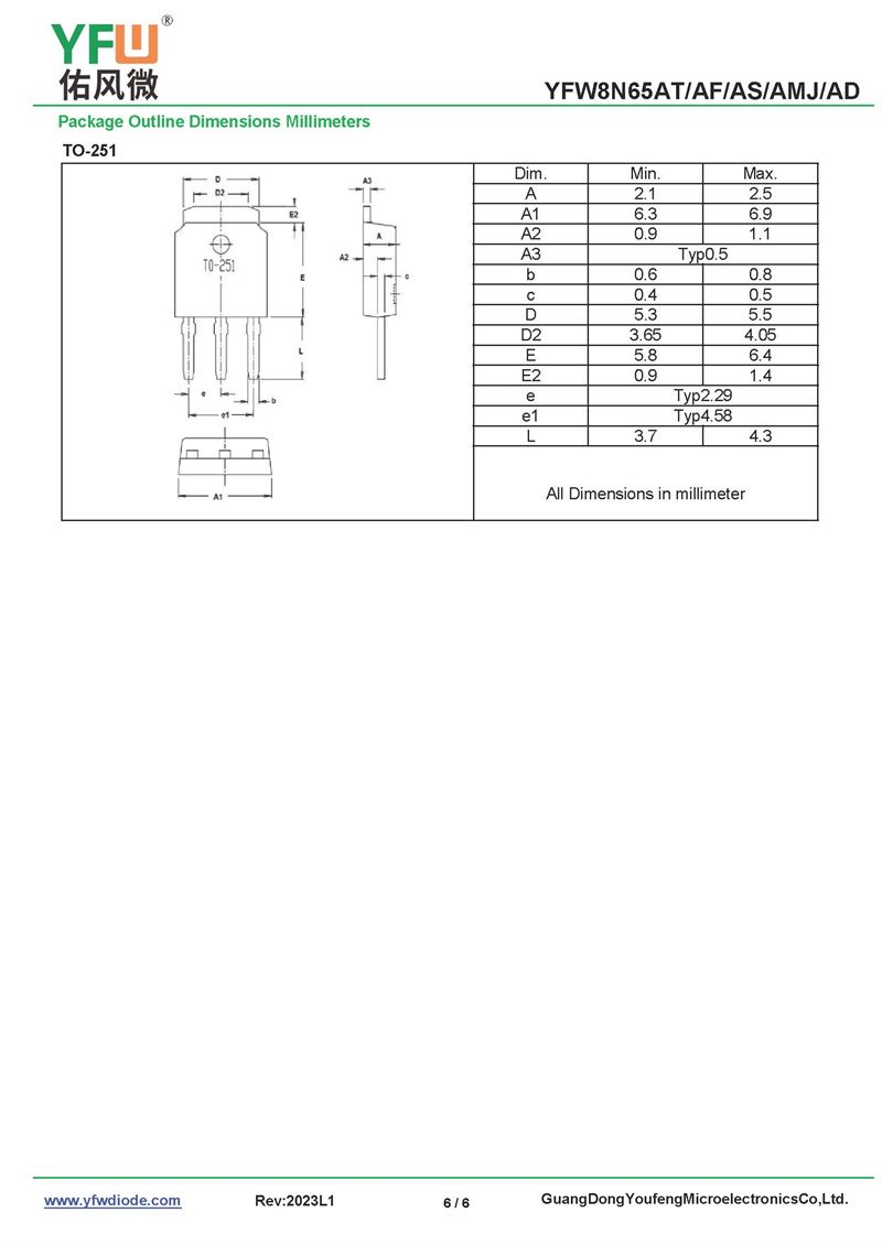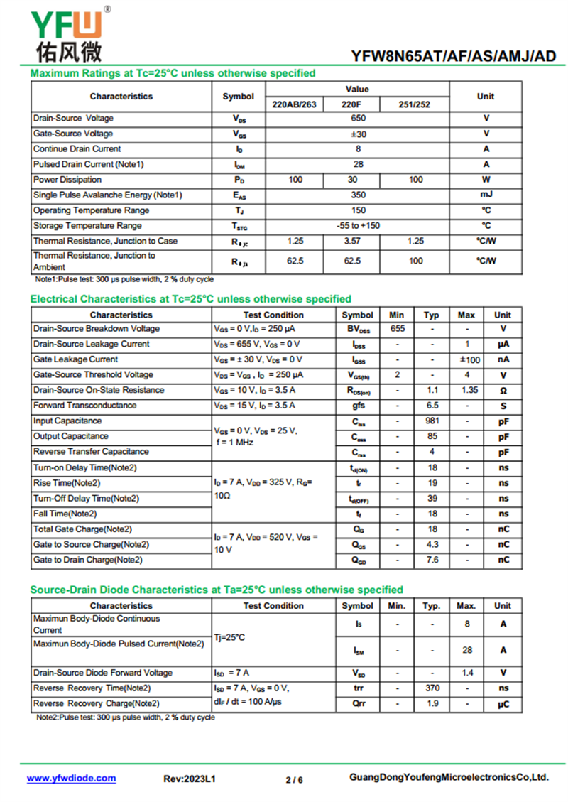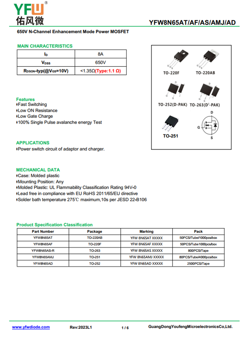 場效應管YFW8N65AMJ 規格書_價格_PDF手冊-廣東佑風微原廠YFW8N65AMJ TO-251_(YFW佑風微)品牌