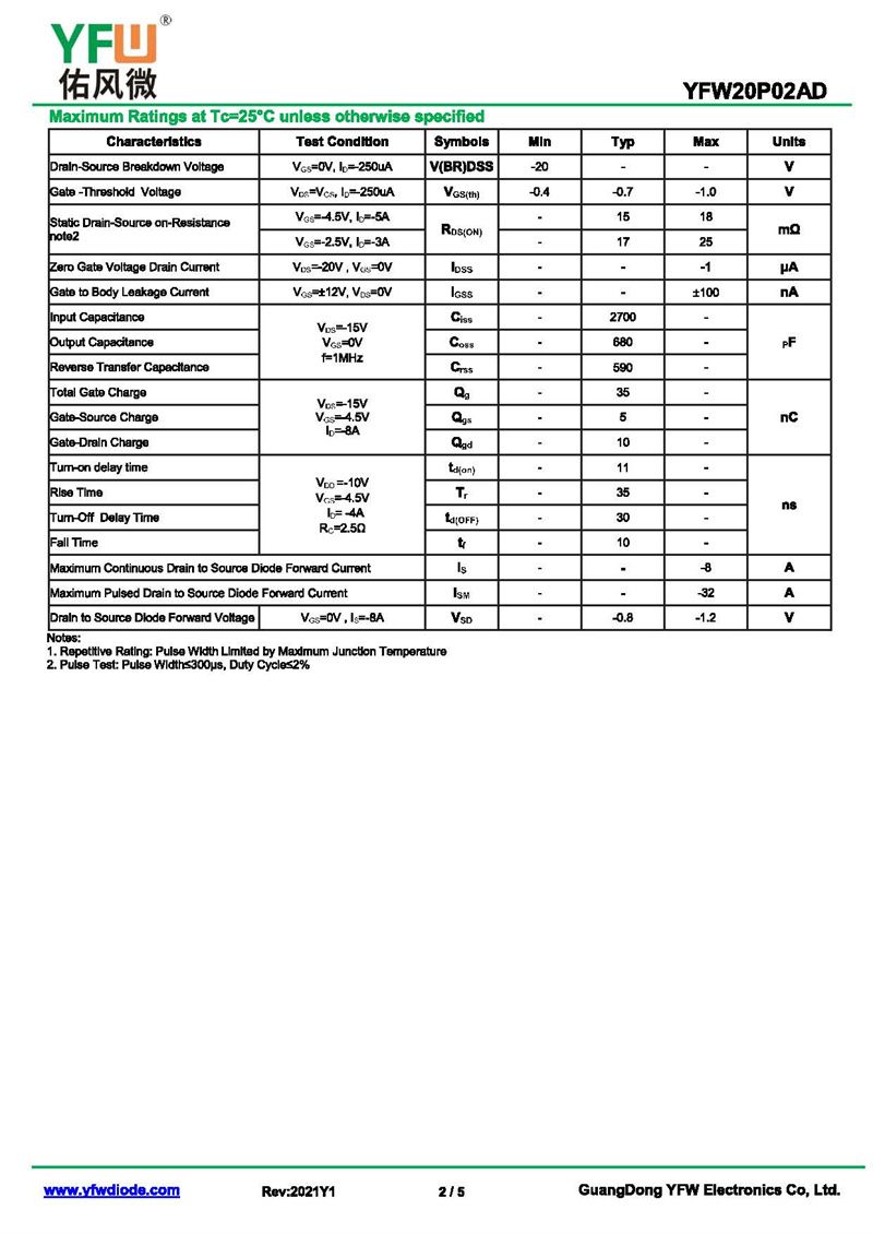 場效應管YFW20P02AD 規格書_價格_PDF手冊-廣東佑風微原廠YFW20P02AD TO-252_(YFW佑風微)品牌