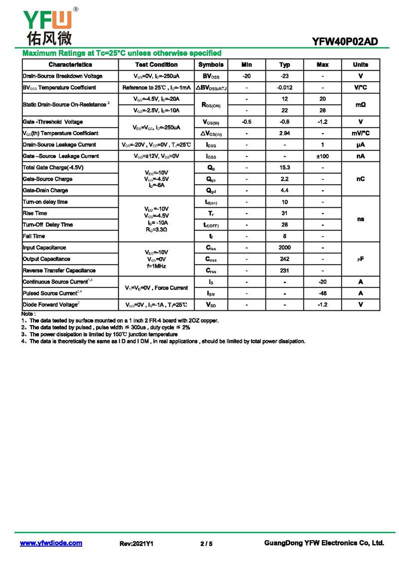 場效應管YFW40P02AD 規(guī)格書_價格_PDF手冊-廣東佑風微原廠YFW40P02AD TO-252_(YFW佑風微)品牌