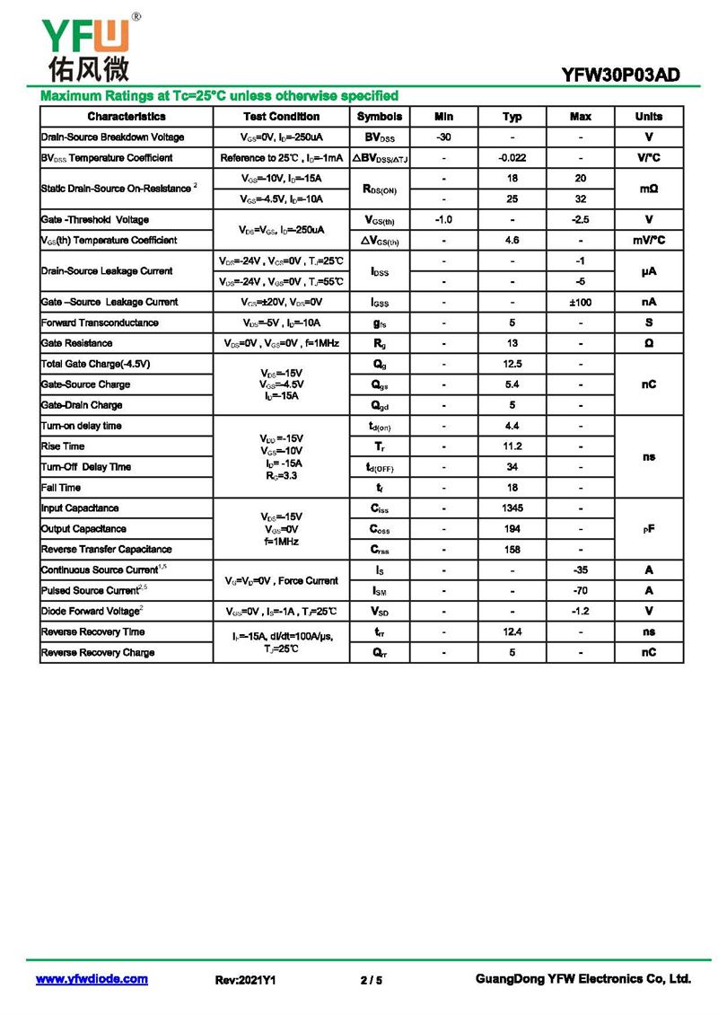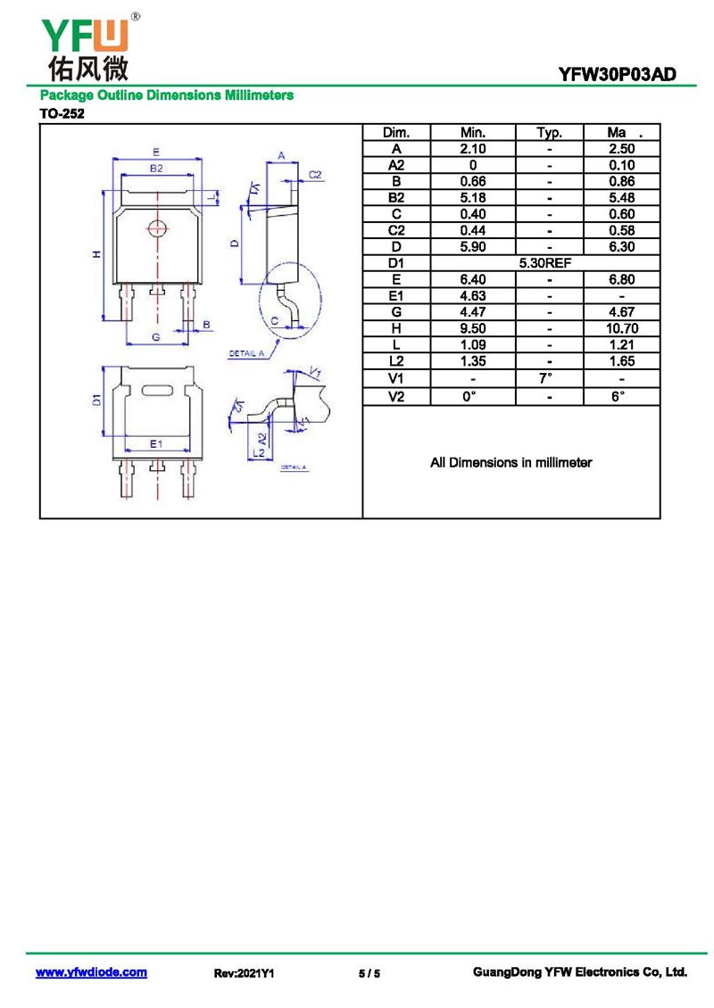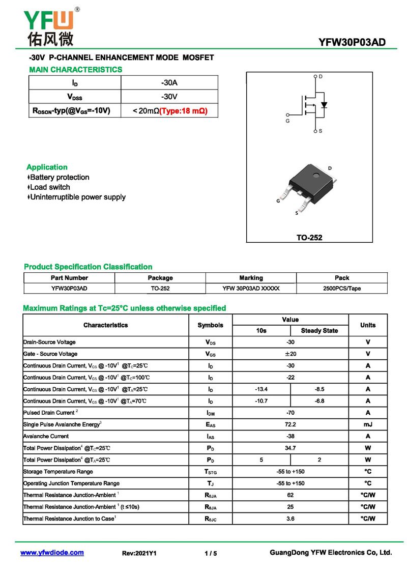 場效應管YFW30P03AD 規格書_價格_PDF手冊-廣東佑風微原廠YFW30P03AD TO-252_(YFW佑風微)品牌